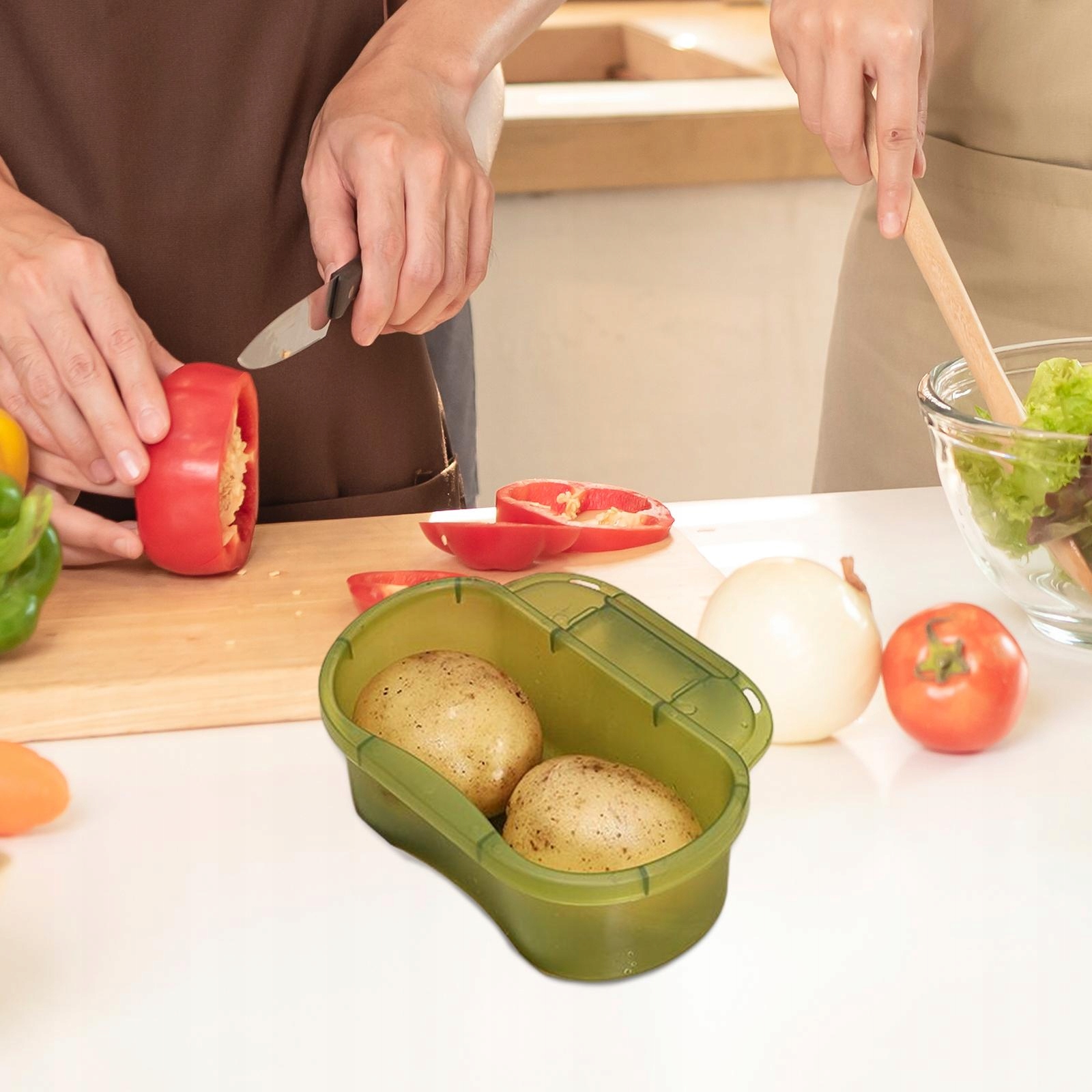 Применение: контейнер для хранения, предназначенный для мытья и хранения различных типов овощей, фруктов и других кухонных гаджетов, поддержание порядка на стойке.