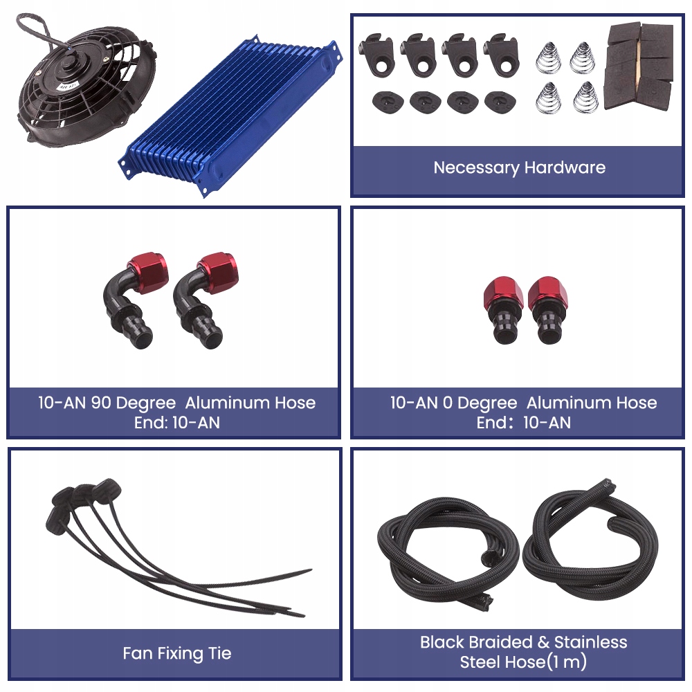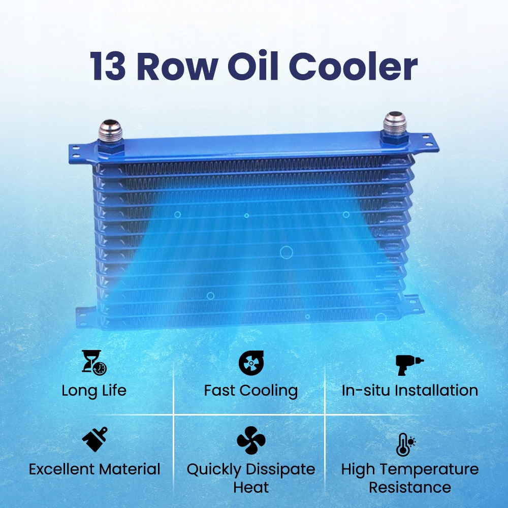 Универсальный 13-рядный масляный радиатор, 7-дюймовый вентилятор радиатора, 12 В, 80 Вт со шлангом масляного радиатора