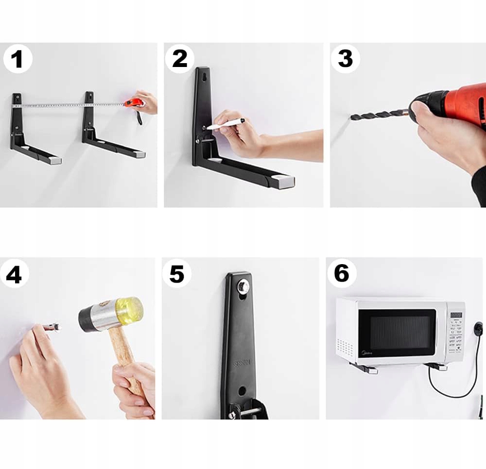 Держатель стены для микроволновой печи изготовлен из нержавеющей стали, окрашенной в черный цвет - он устойчив к ржавчине, долговечному, долговечному и не деформируется