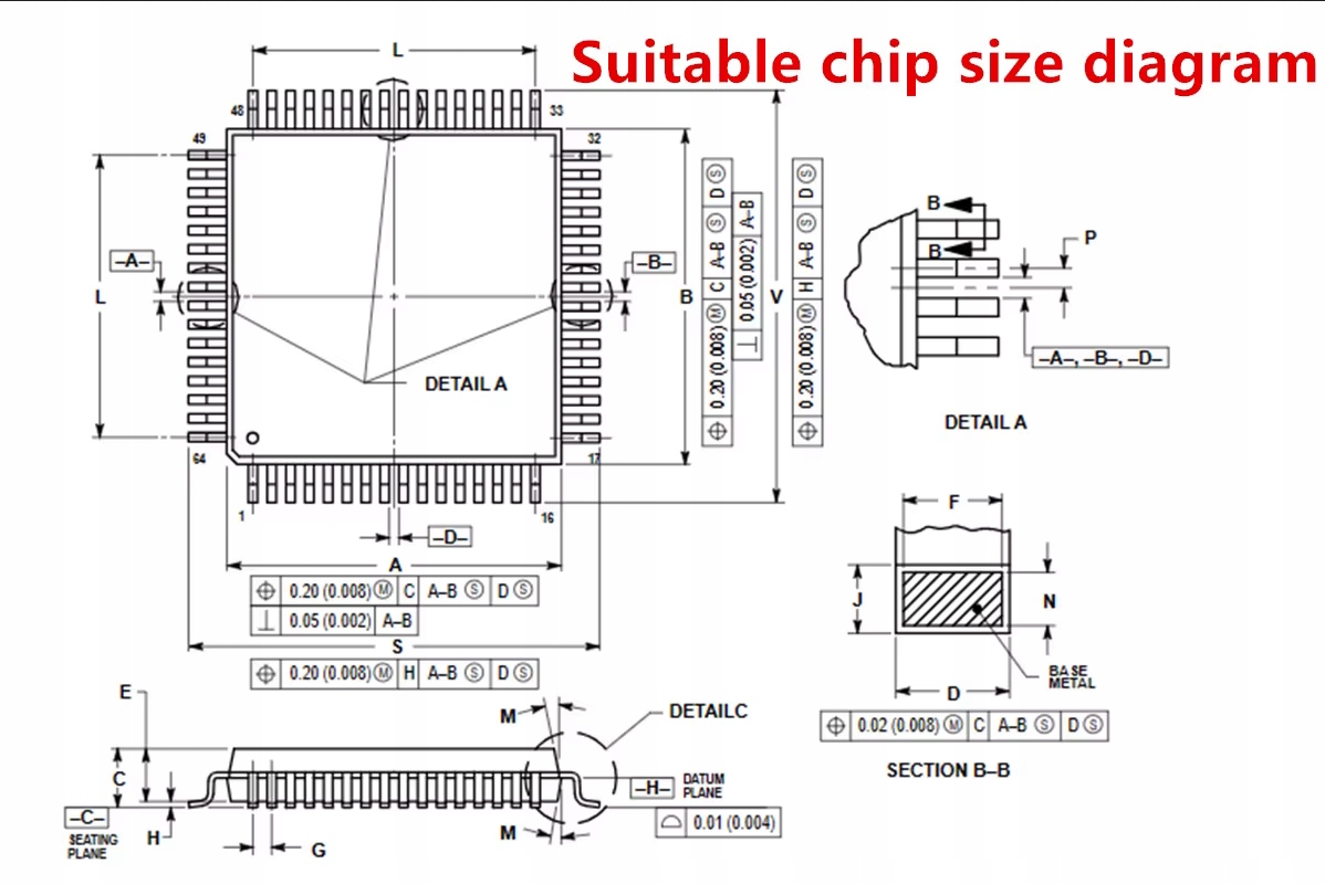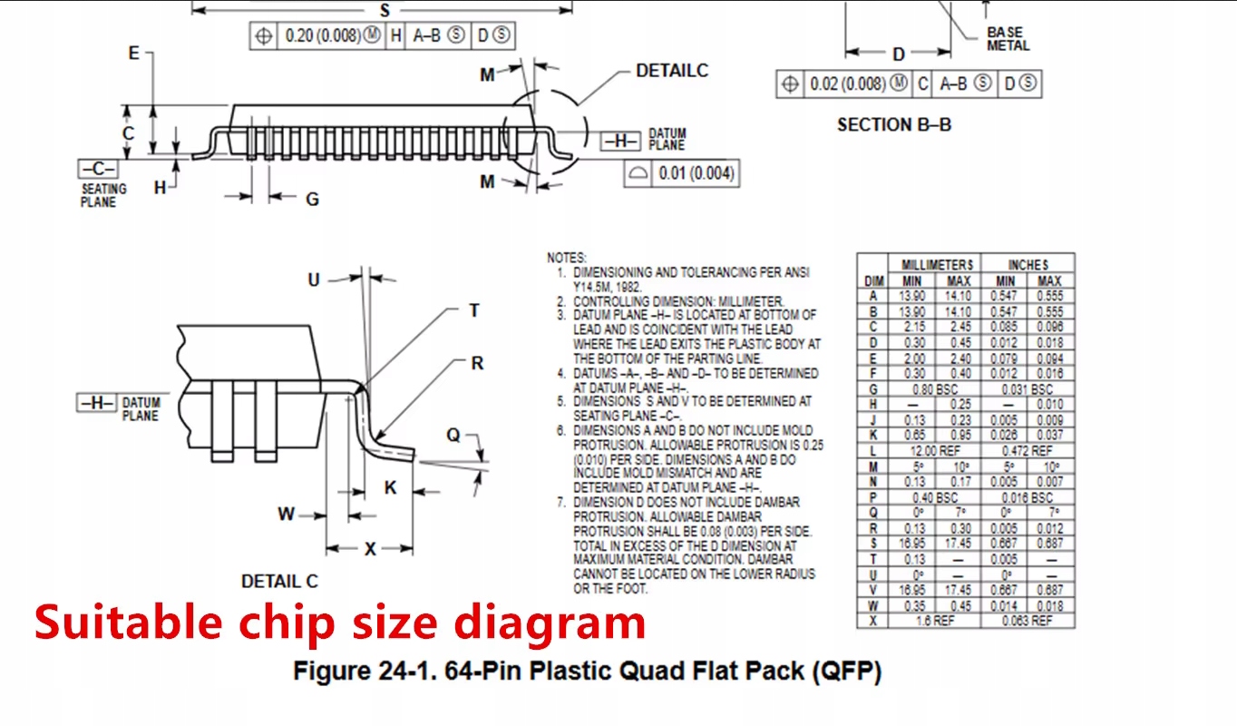 - Размеры системы QFP64: 14x14 мм