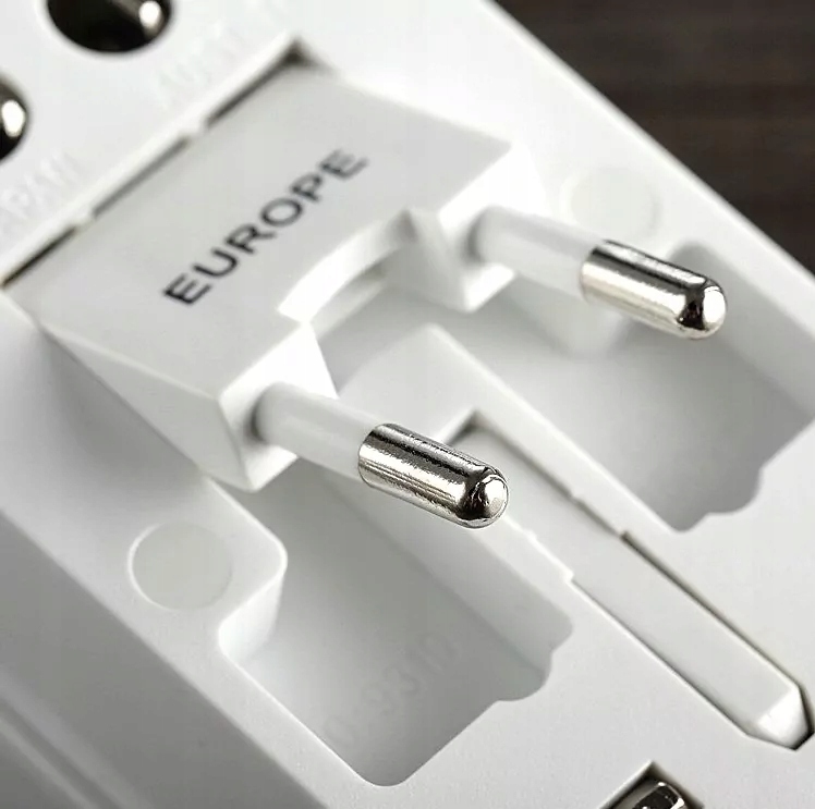 - Этот универсальный адаптер позволяет использовать устройства с окончательными проводами иностранными и польскими пробками , чтобы иметь возможность подключить их к электрическому сокету, доступной в данной стране безопасное использование