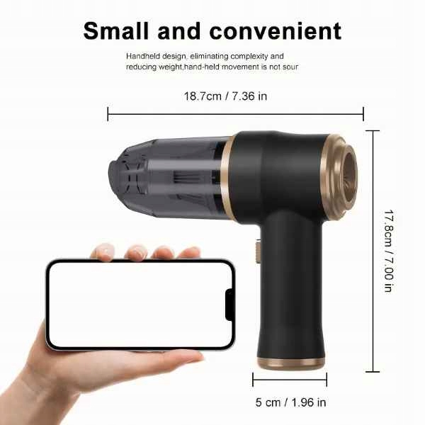 - 【Портативный и тихий】 достаточно, чтобы поместиться в ящике, шкаф или автомобильный ствол. Свет, весит всего 360 г, с эргономичной ручкой для длительного использования без усталости. Беспроводной дизайн и начиная с одной кнопки позволяют неограниченные движения и облегчить чистящие лестницы, кухни и автомобили. Благодаря уровню шума ниже 78 дБ, он не будет беспокоить детей или напугать животных.