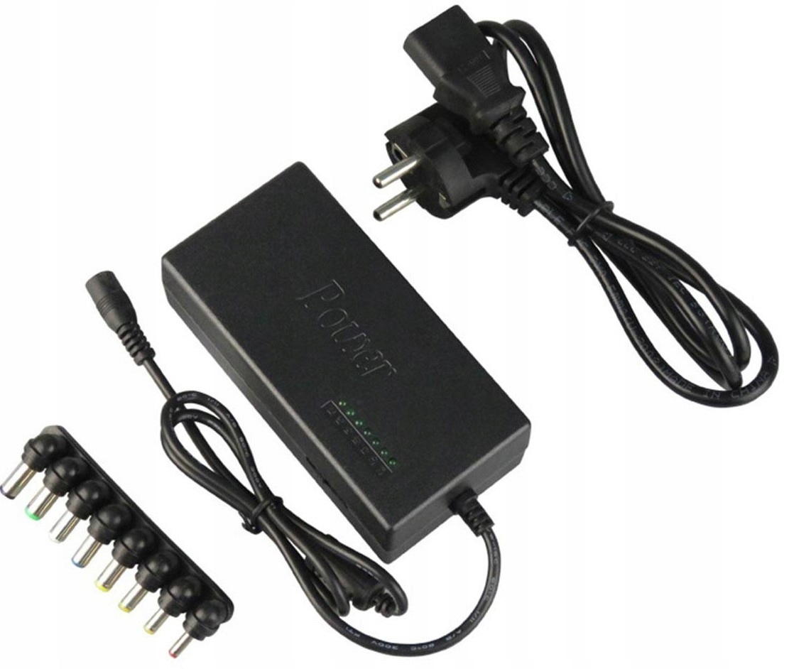 Универсальный сетевой адаптер для ноутбуков. Благодаря набору из 8 сменных вилок и возможности регулировки выходного напряжения позволяет адаптировать блок питания под конкретную модель ноутбука.
