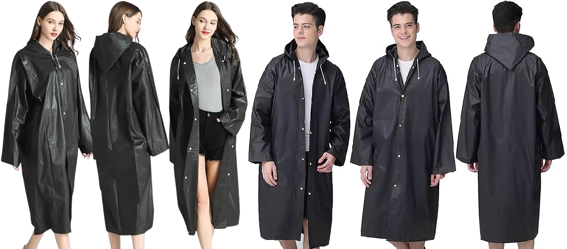 - длинное пальто + капюшон - плащ очень длинный, и, кроме того, у него также есть капюшон, который имеет струны в конце. Идеальная защита от дождя.