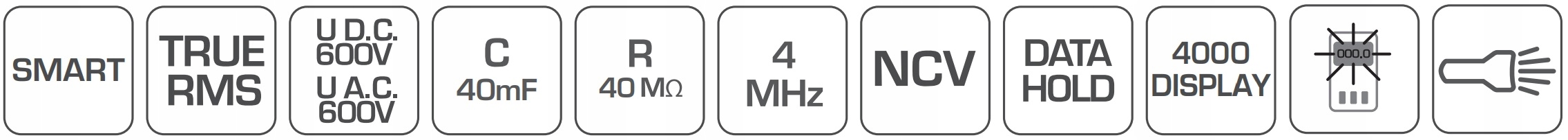 - Технология SMART - счетчик сам распознает измеряемый параметр и автоматически настраивает диапазон измерения (AUTO RANGE) постоянного и переменного напряжения, тесты на целостность и сопротивление