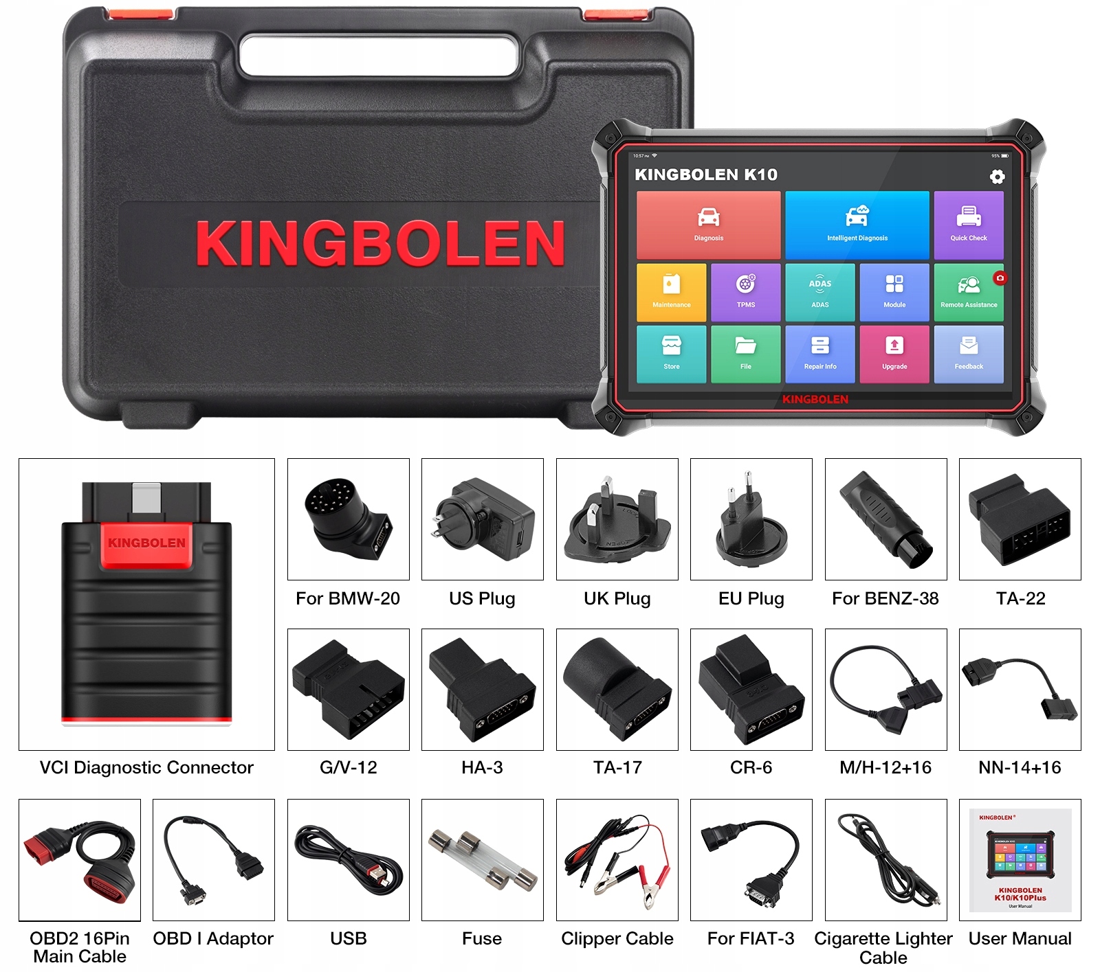 УНІВЕРСАЛЬНИЙ ДІАГНОСТИЧНИЙ ІНТЕРФЕЙС OBD2 ПОВНИЙ KINGBOLEN K10 PROFESSIONAL