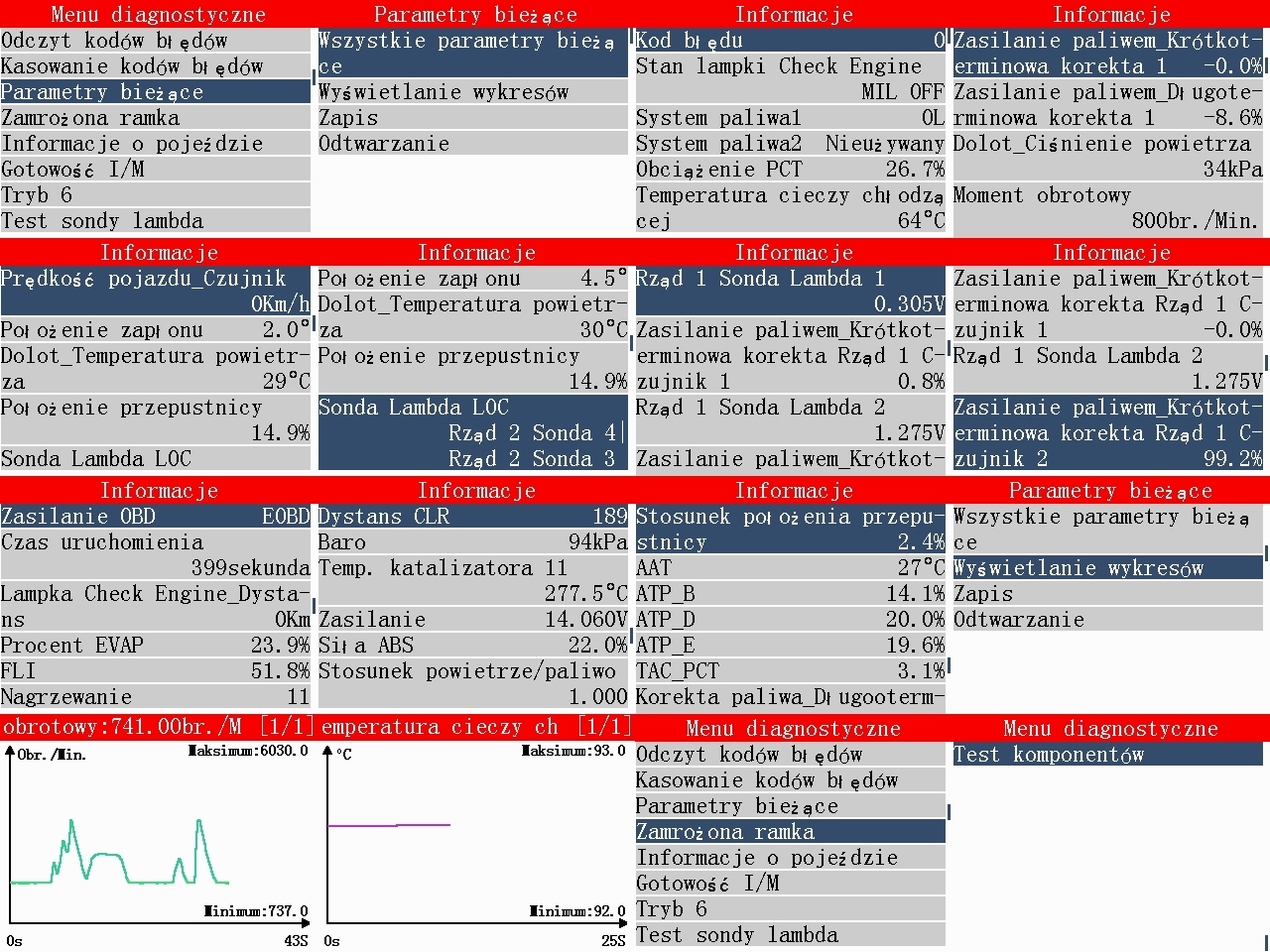 - Полный Польский язык (меню и коды ошибок). b>, Запуск и зарядка (диаграмма) > Замороженные рамки с помощью Car через гнездо OBD2 (не требуют батареи). /b> не поддерживает 24В. OBD2/EOBD/JOBD. B> Мониторинг эксплуатационных параметров Параметры в форме диаграммы . > P1, P3, U1