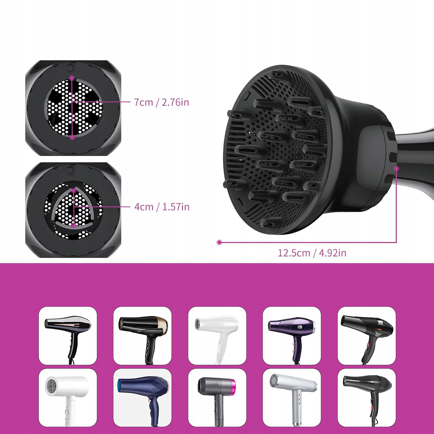 универсальный диффузор для волос для вьющиеся укладки, волнистые волосы. Конструкция с регулировкой конструкции сотовой конструкции 4 см-6,8 см