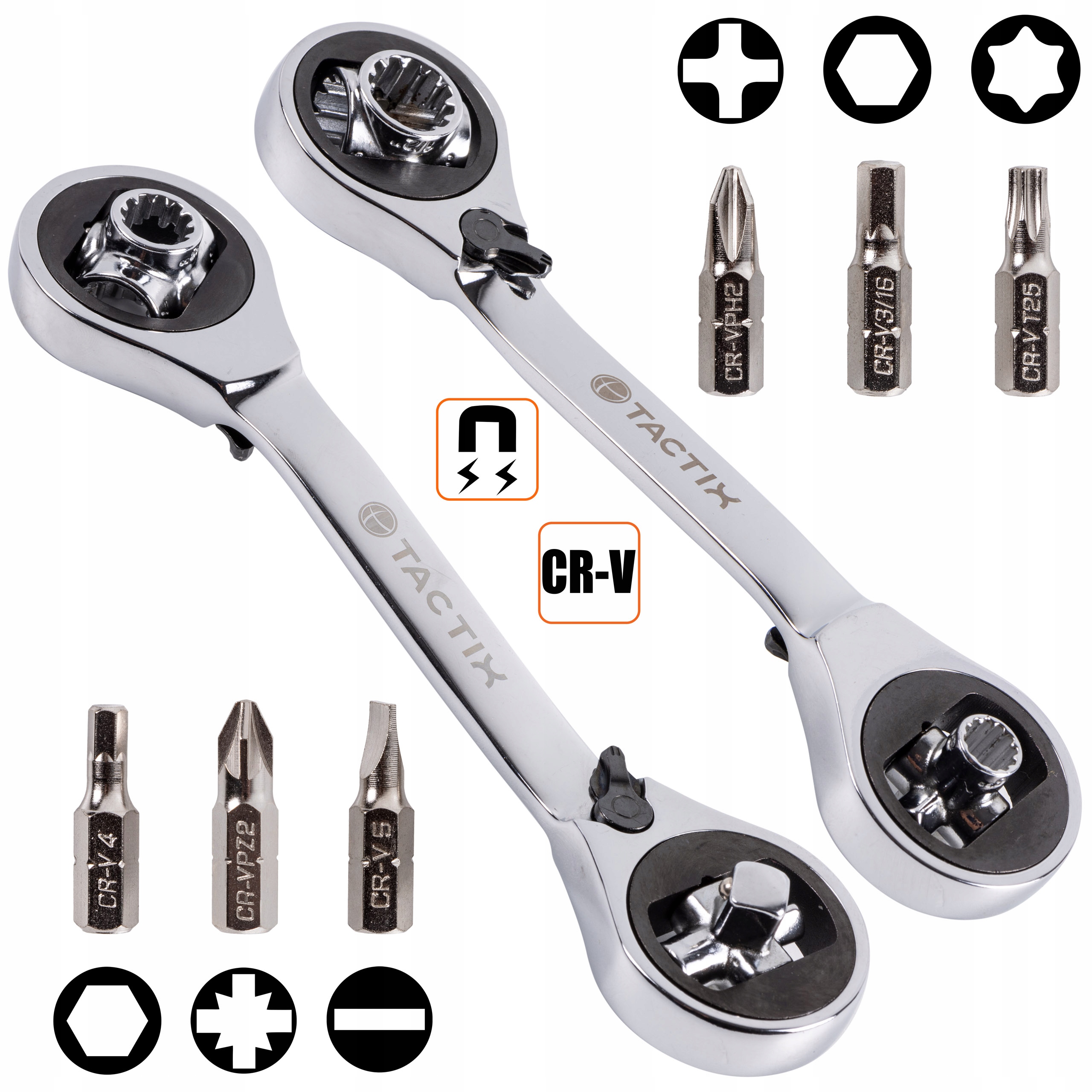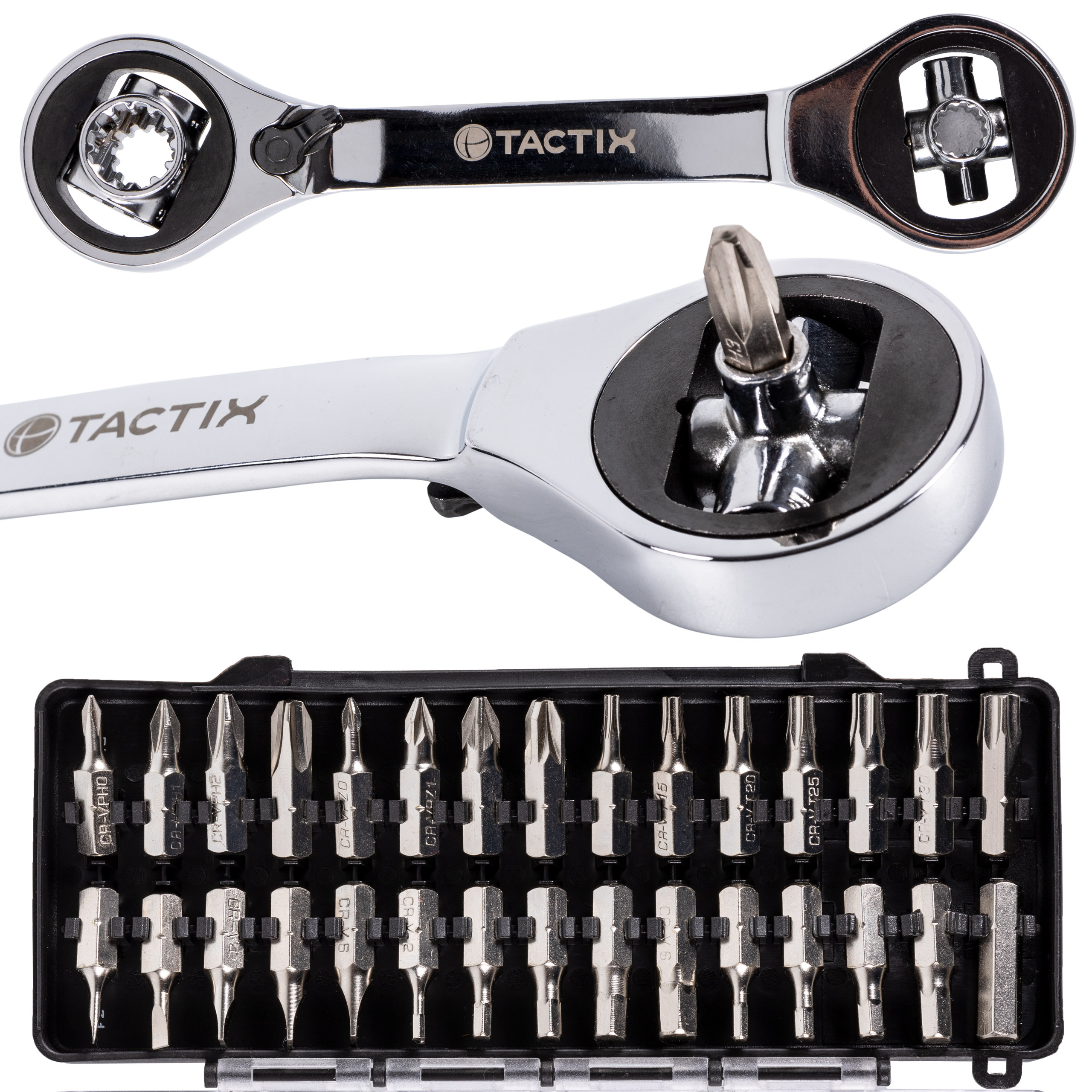 Универсальный торцовый ключ с трещоткой и битами TACTIX