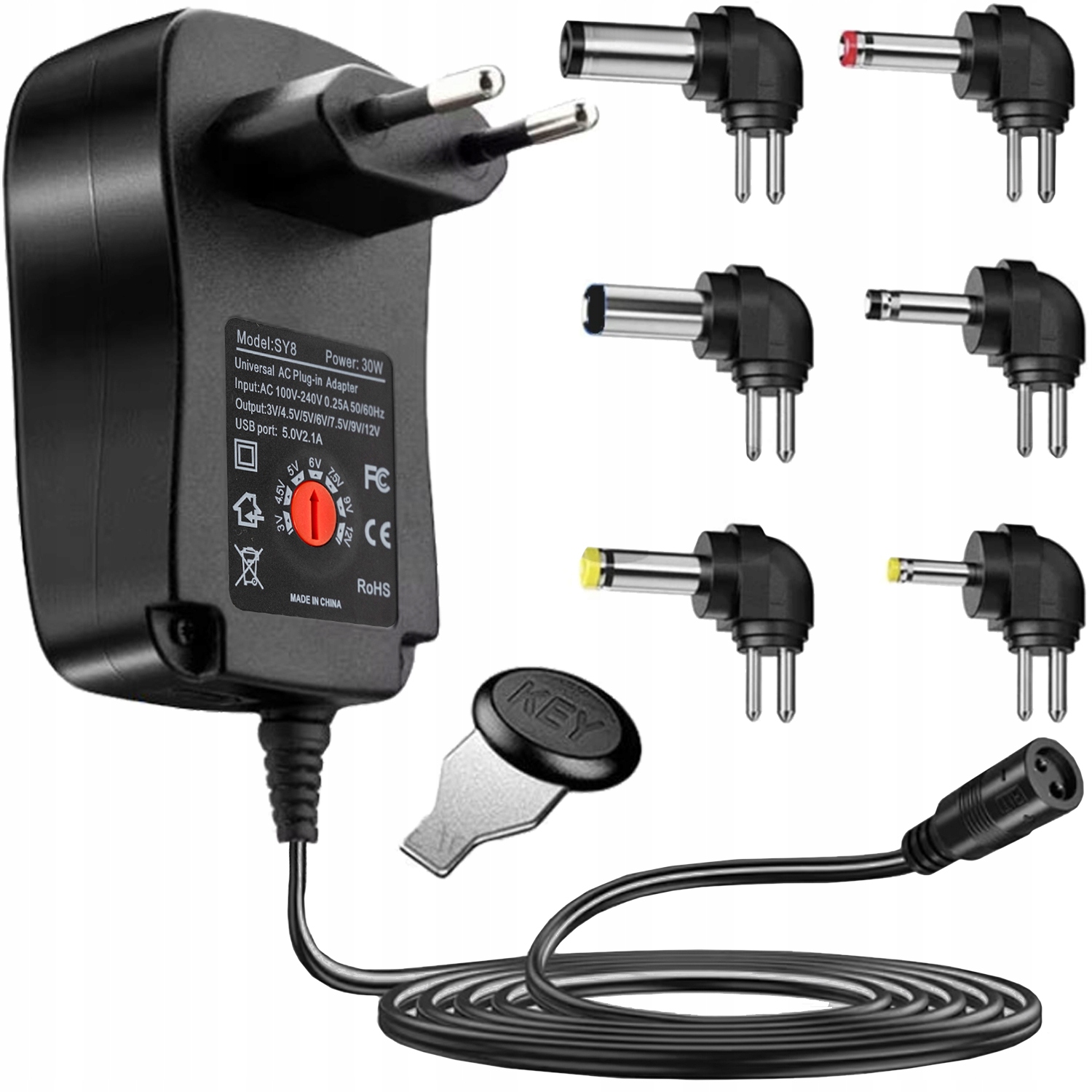 Универсальный источник питания с b> Регулируемое выходное напряжение - это универсальный инструмент, который будет работать во многих домашних и профессиональных приложениях. Благодаря регулированию напряжения в диапазоне 3 В, 4,5 В, 5 В, 6 В, 7,5 В, 9 В, до 12 В, этот источник питания может быть адаптирован к различным электронным устройствам