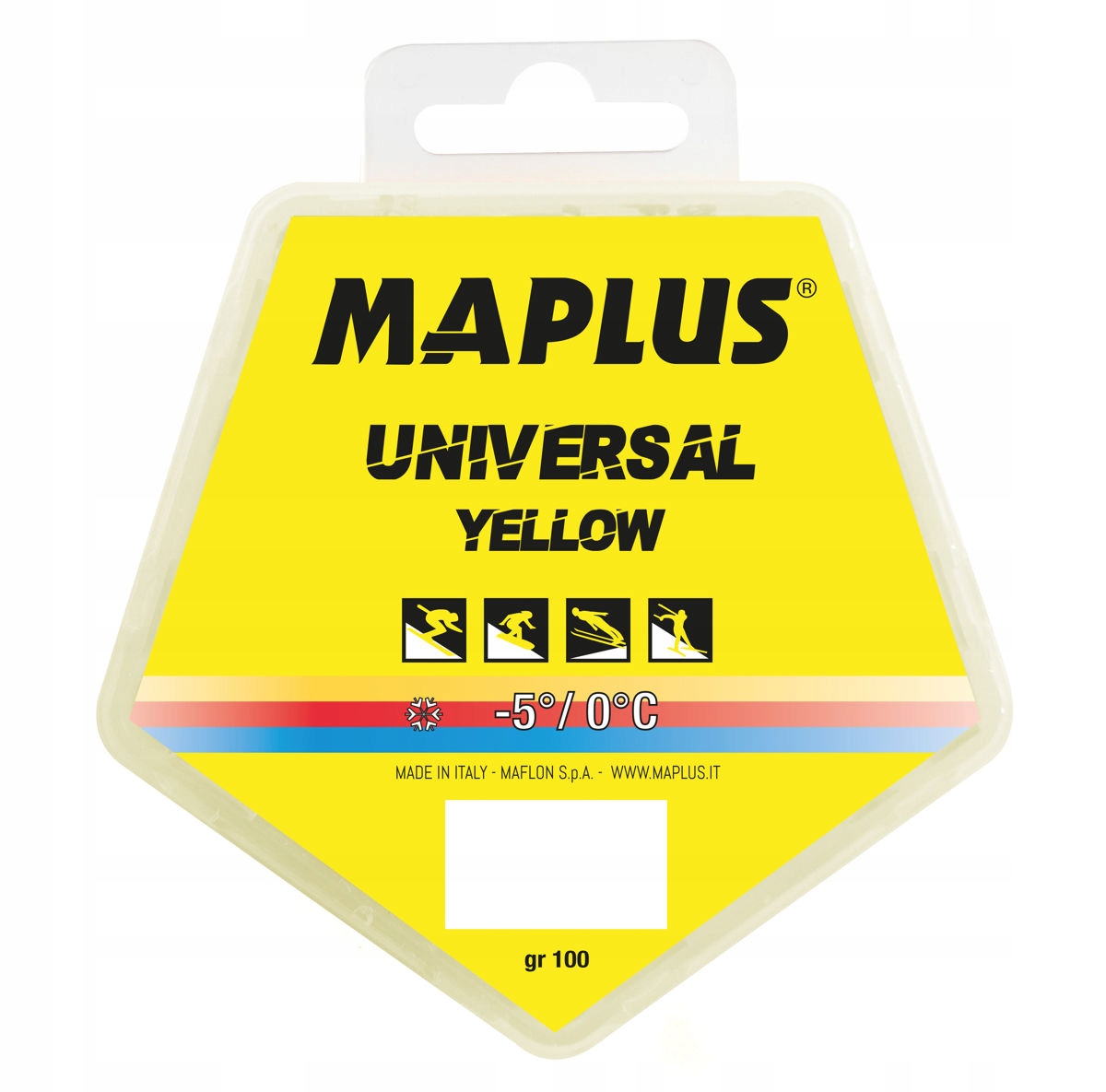 Универсальная смазка, продукт итальянской компании MAPLUS (ранее Briko-Maplus), модель Universal Yellow (каталожный номер MW0701), в кубике по 100 г, рекомендуется для горячей смазки скоростного спуска. лыжи, лыжи для беговых лыж и сноуборда. Смазка упакована в пластиковую, маркированную, закрытую коробку.