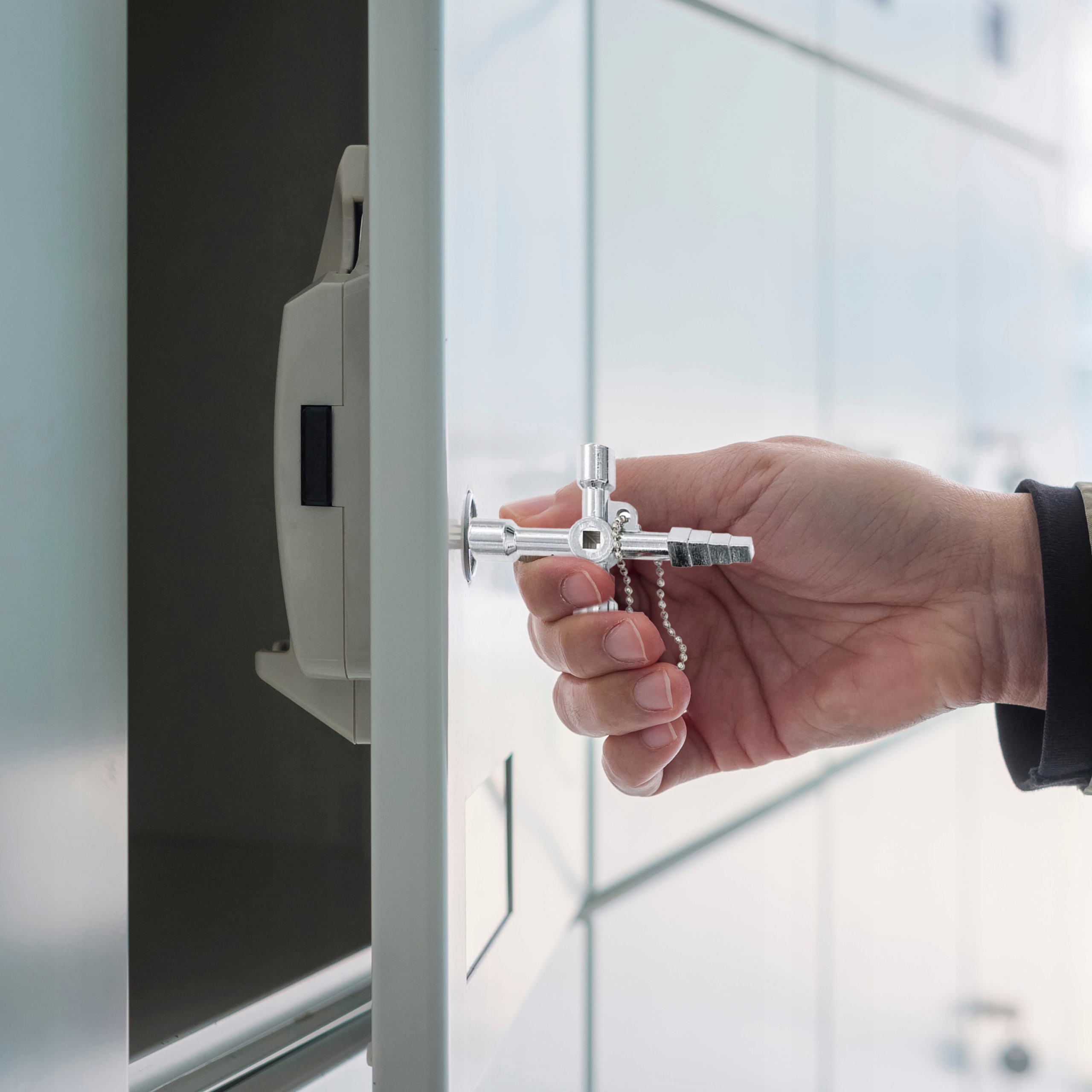 Ключ имеет множество преимуществ, одно из них — он имеет целых 4 кончика, что делает его универсальным. Он откроет практически все шкафы управления, доступные на рынке. Благодаря небольшому размеру он поместится в любую сумку, не занимая много места. Наличие такого ключа просто необходимо, он не только освободит место в сумке, но и любой шкаф управления перестанет выглядеть устрашающе.