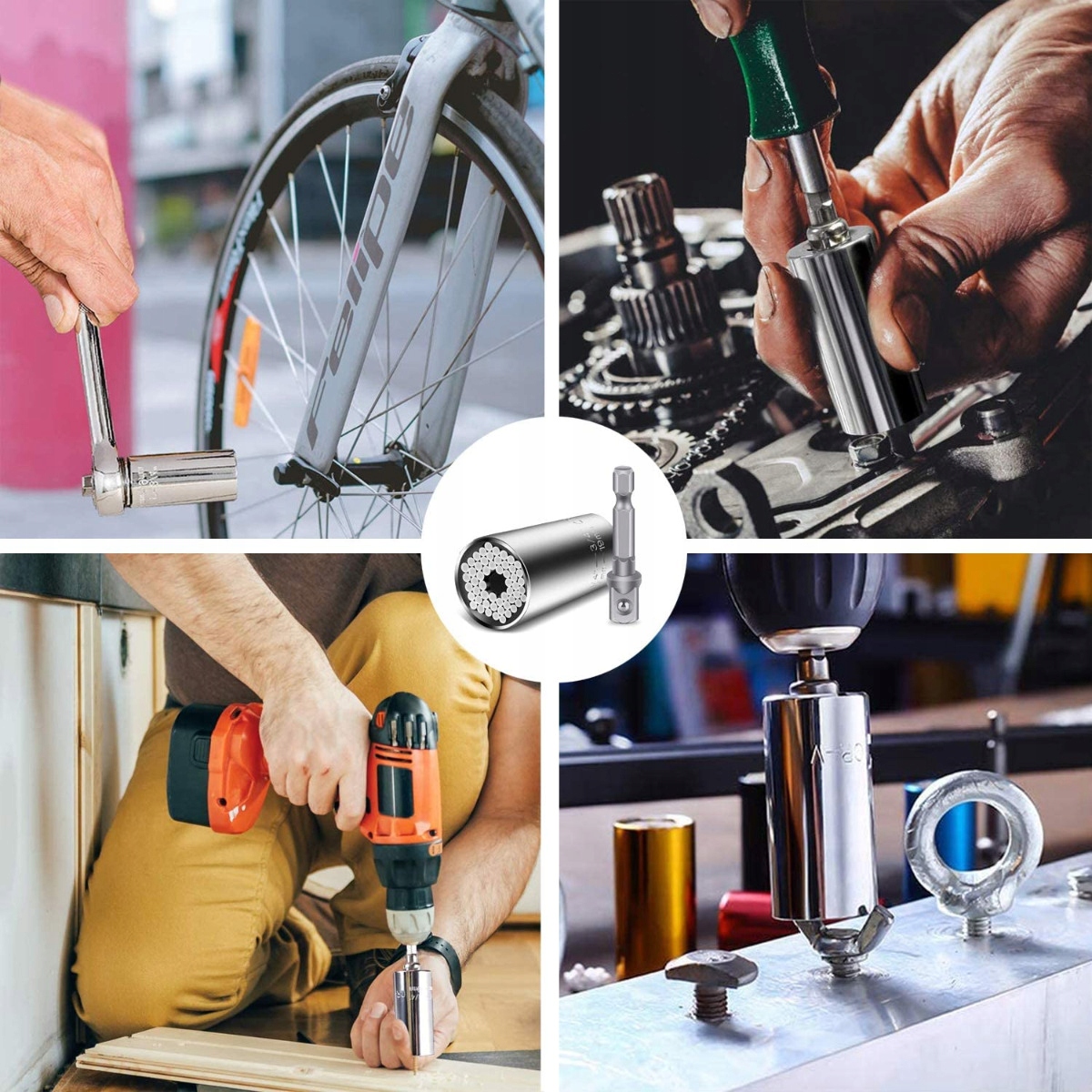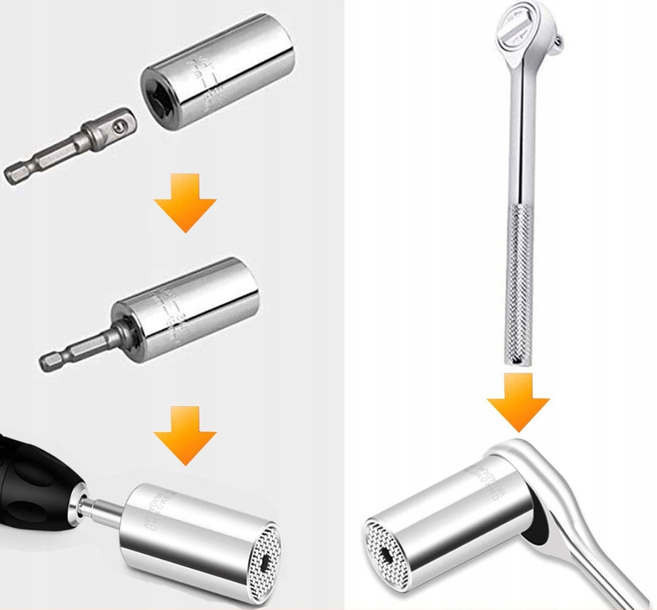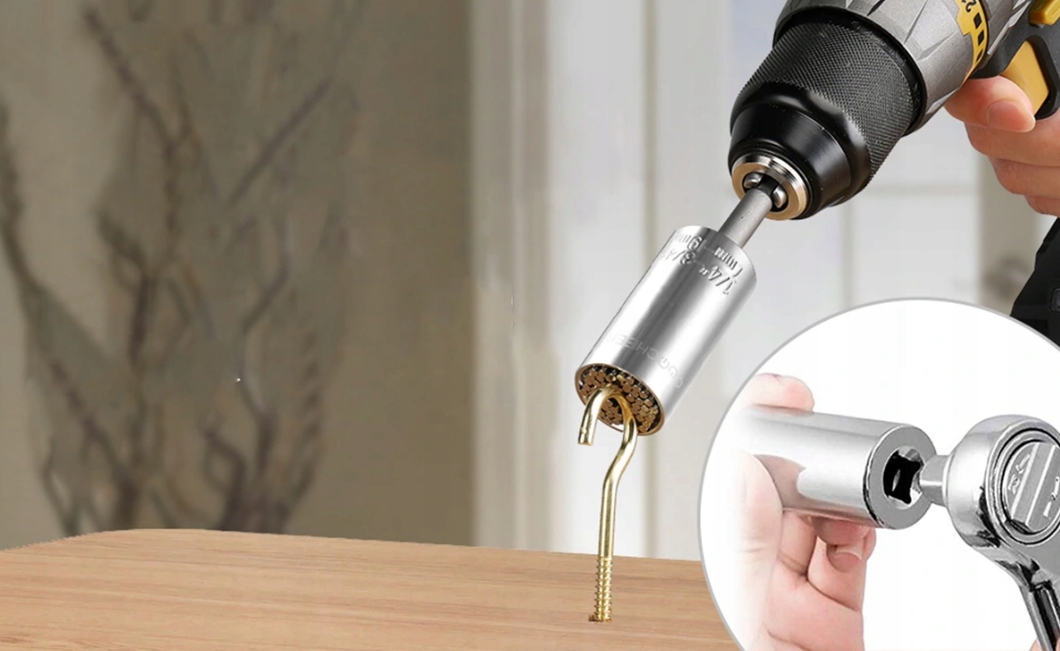 Универсальный размер позволяет использовать винты диаметром от 7 мм до 19 мм. Можно использовать со многими дрелями. и ввинчивайте различные типы болтов/винтов, избавляясь от ненужных гаечных ключей.