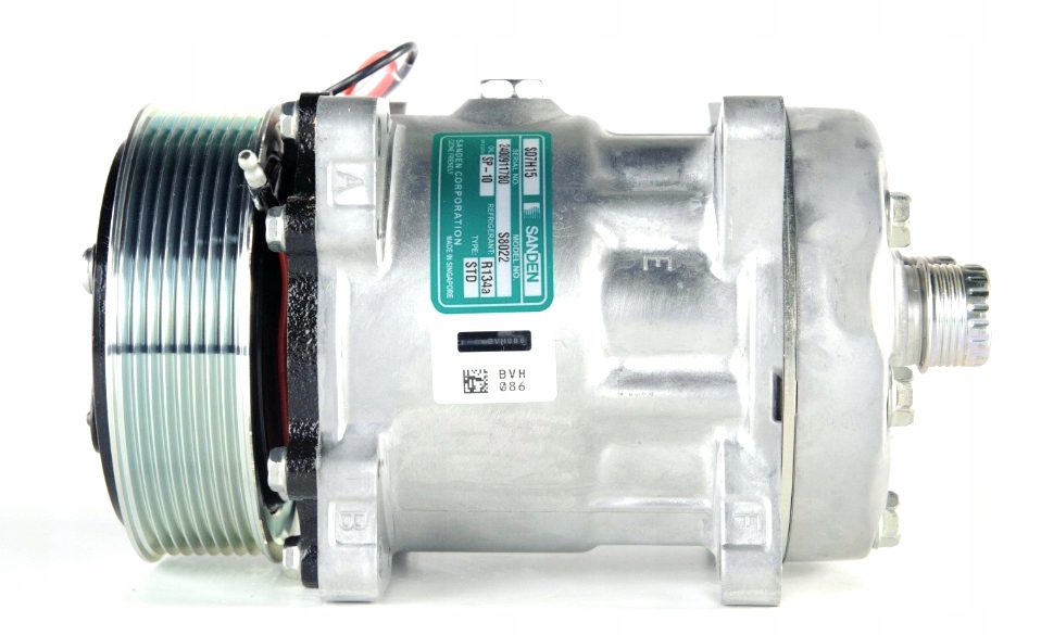 Компрессор кондиционера японской компании Sanden модель SD7H15может использоваться в системах кондиционирования различных транспортных средств и машин. Компрессор 8022 работает при 12 В и имеет шкив диаметром 119 мм с ремнем PV8.< /п>