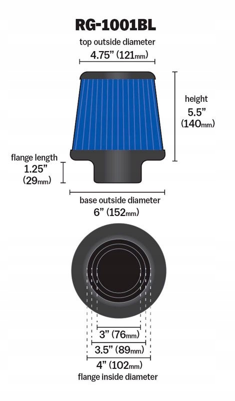 Universal K & N RG-1001BL Conical Filter