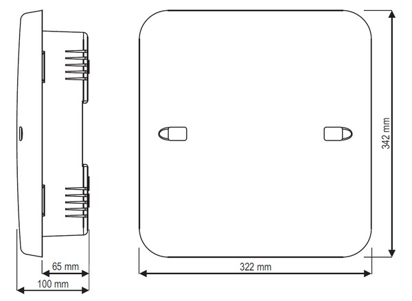- Размеры корпуса 322 x 342 x 100 мм
