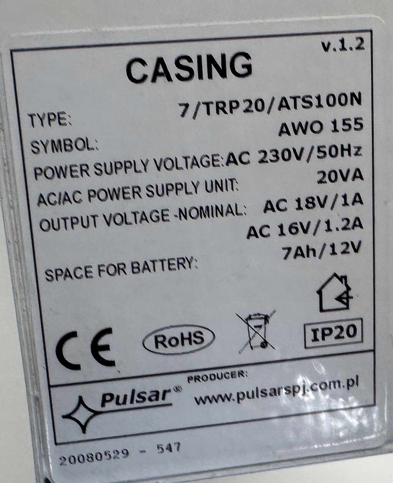 Оплачивая «Универсальный корпус Pulsar AWO 155 7/TRP20/ATS100N V.1.2 (M)» данное изделие из «Корпуса» вы можете быть уверены, что после оформления заказа, доставки в Украину, вы получите именно то, что заказывали, в оговоренные сроки и европейского качества.