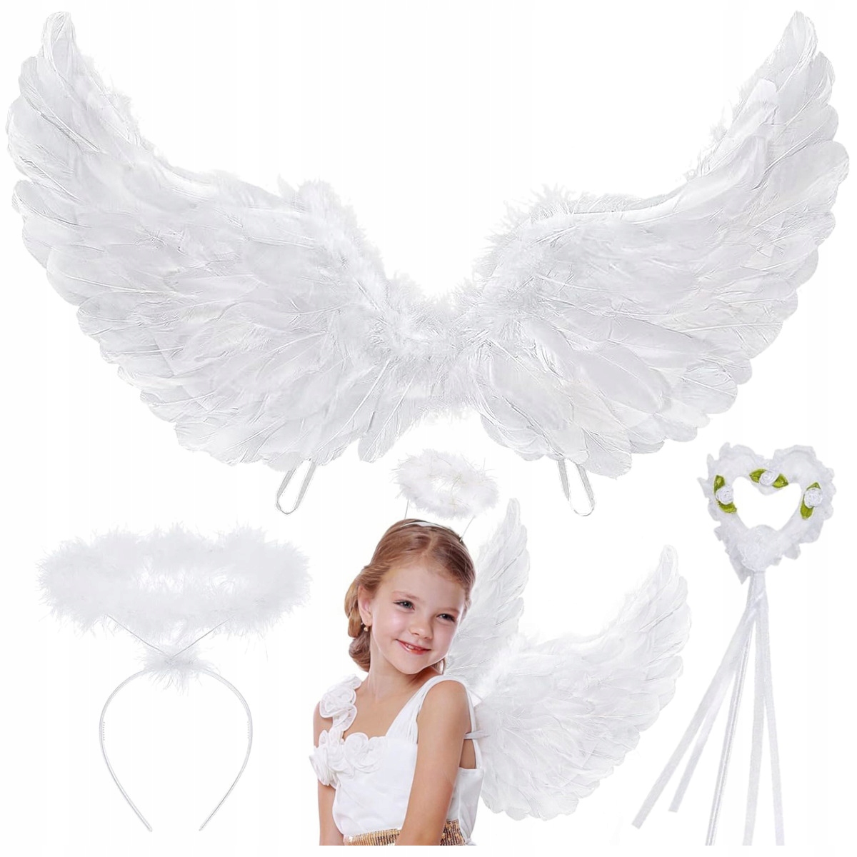 УНИВЕРСАЛЬНЫЙ КОСТЮМ АНГЕЛА АНГЕЛ РОДНОЙ ВЕЧЕРИНКА ШКОЛЬНЫЙ ВЫПУСК КРЫЛЬЯ ГАЛО ПЕРЬЯ