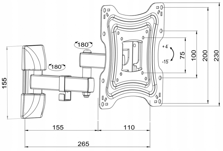 Универсальное настенное крепление, предназначенное для ЖК и плазменных экранов диагональю от 15 до 42 дюймов. Грузоподъемность ручки 15 кг. Совместим с большинством плазменных и ЖК-мониторов, доступных на рынке. Расстояние между отверстиями VESA: 200x200, 200x100, 100x100, 75x75, 50x50.