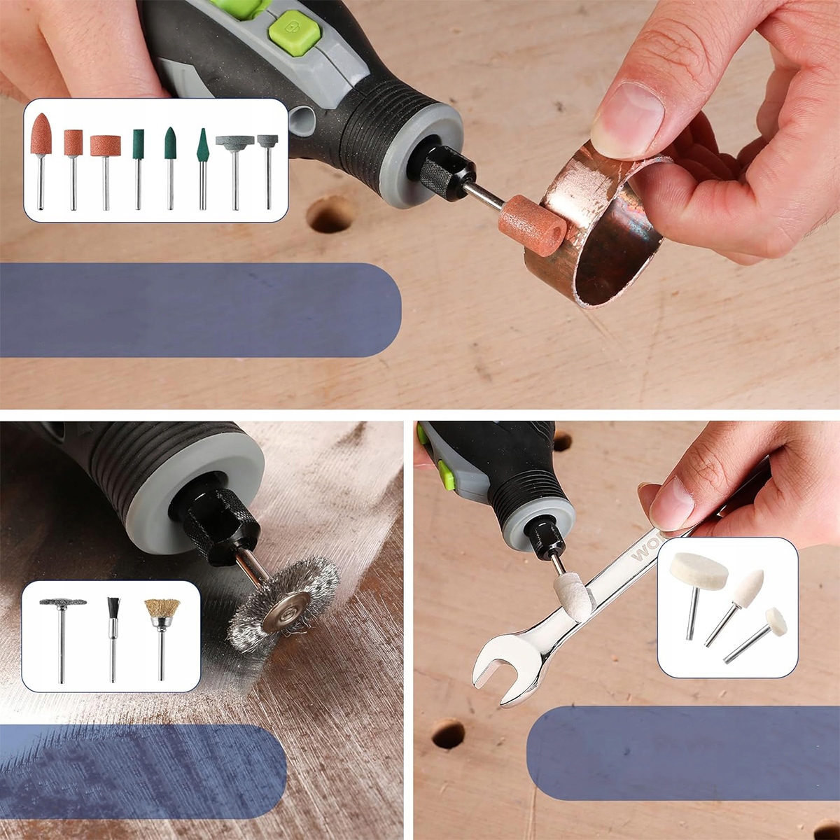 ✅ Всегда иметь правильный наконечник под рукой - кончики шлифования, полировка дисков и другие аксессуары тщательно хранятся в чемодане. Благодаря этому вы сэкономите долгий поиск, и у вас сразу же будет под рукой правильный аксессуар. Кроме того, удобный корпус легко хранить и идеально подходит для взять с собой.