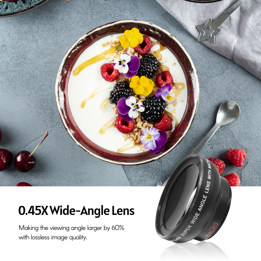 4. макрообъектив работает с линзой шириной 0,45x, что означает, что угол просмотра составляет 60 с качеством изображения стратального изображения.