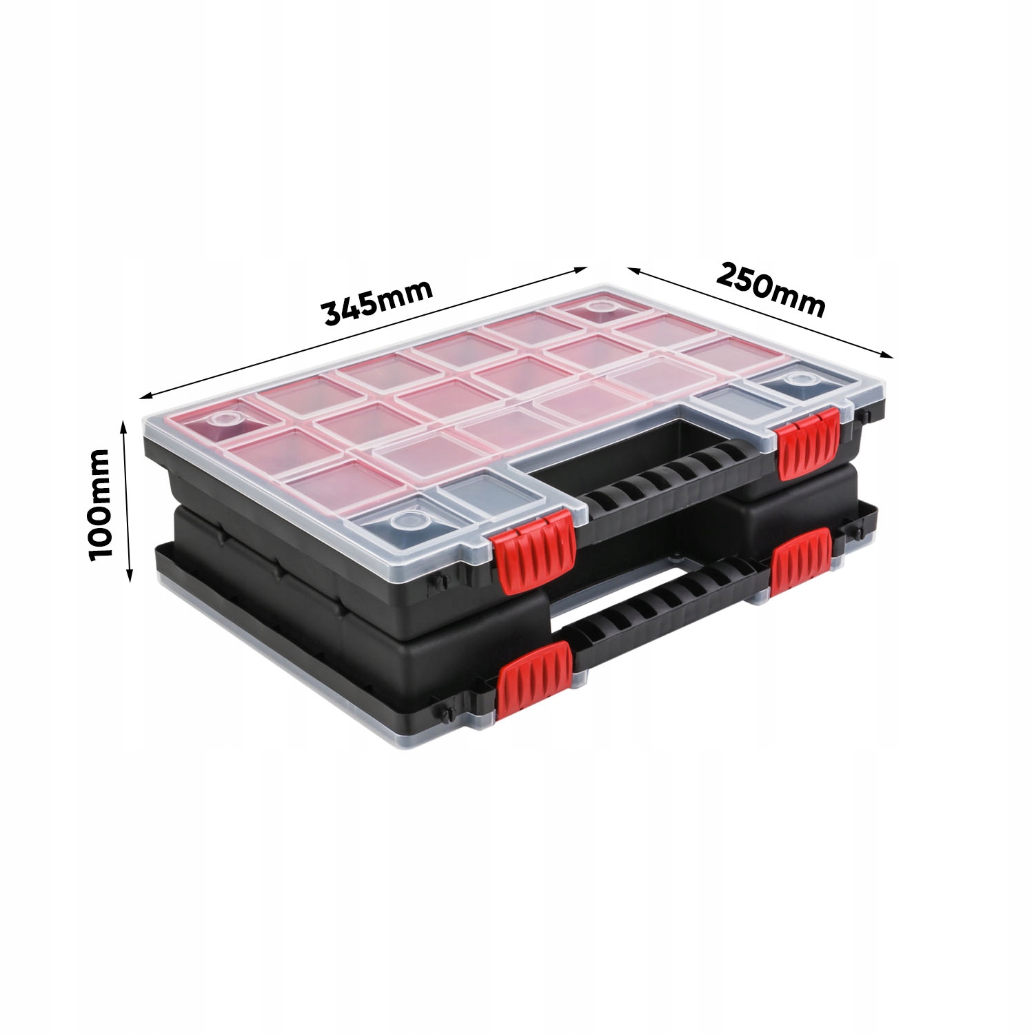 Органайзер NORP14DUO - это версия органайзера, но в версии "DUO" - это не что иное, как два органайзера NORP, только соединенные друг с другом с помощью соответствующих клипс, которые можно снять в любой момент и тогда у нас есть два органайзера. В нашем распоряжении единичные NORP, т.е. удобные и полезные контейнеры, которые можно использовать для множества решений. Они идеально подходят как для мелких, так и для крупных предметов. Благодаря специальной системе отсеков мы можем регулировать длину/ширину необходимого нам места для хранения.