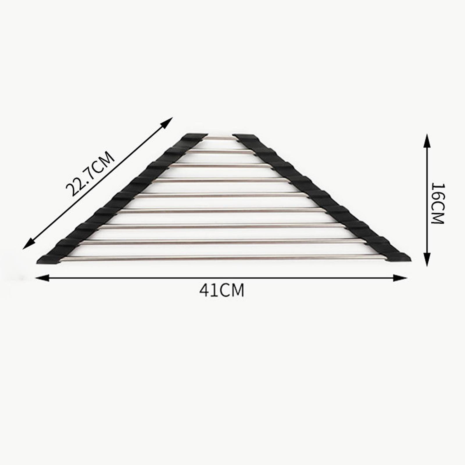 Небольшой размер: стойка треугольника -для полного использования углового места кухонной раковины. Разработано для возможности укладки для эффективной сушки сосудов с соответствующим дренажом и вентиляцией.