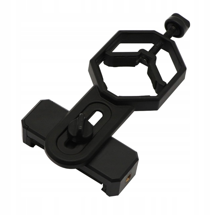Монтажное отверстие следует расположить на фокусере или самом окуляре и затянуть винт. Поместите телефон/смартфон в регулируемый держатель. Затем расположите ручку так, чтобы повысить резкость изображения на смартфоне, и наконец затяните винт, расположенный под ручкой.