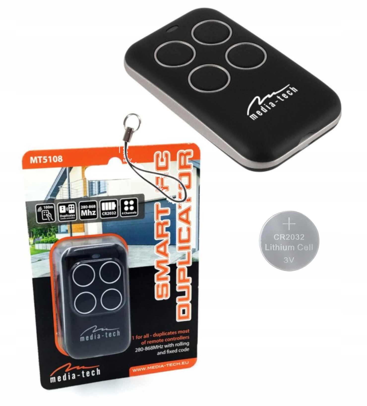 Smart RC Duplicator поддерживает широкий диапазон частот, благодаря которому он является наиболее универсальным пилотом, доступным на рынке, способный копировать более 300 различных моделей пилота. 4-канальный пульт дистанционного управления, работающий при 280-868 МГц. Это позволяет вам копировать пять кодов вместе (можно одновременно настроить две кнопки, которые будут действовать как один отдельный, пятый канал). Если у вас есть два, три различных пульт дистанционных управлений, работающих на разных частотах, с различными кодами, вы можете обрабатывать их все с помощью одного Smart RC Duplicator MT5108, настраивая кнопки, ответственные за каждый пульт дистанционного управления