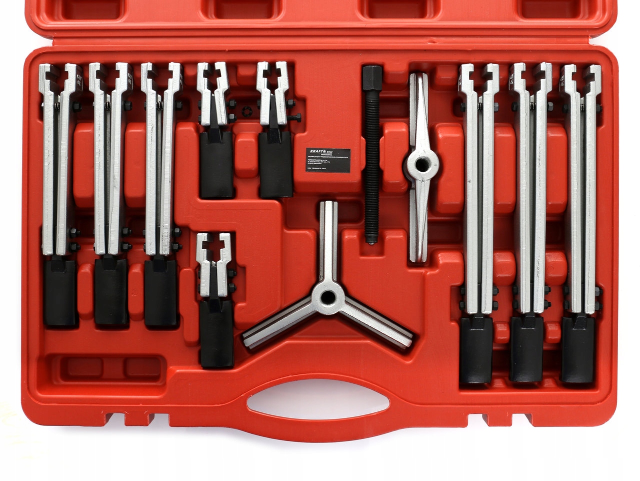 Набор KD10148 предназначен для снятия подшипников, шестерен, шкивов, валов и других застрявших деталей, используемых в механике. Набор предназначен для интенсивной работы в автосервисах и автосервисах. Съемник изготовлен из высокоуглеродистой стали, имеет вороненые рычаги и хромированные лапы двух типов.