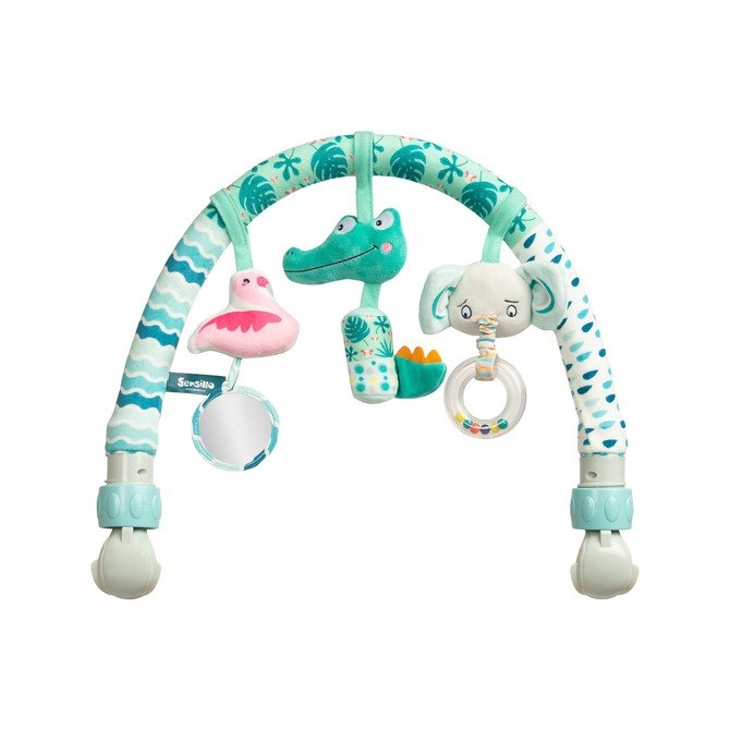 сенсорные игрушки, такие как гремучие, зеркало, мягкие текстуры, поддерживают развитие чувств, небольшие двигательные навыки и координация. Игрушки могут быть легко расстегнуты и вымыты.