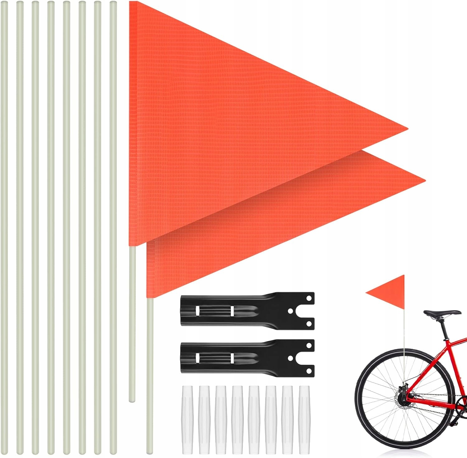 🔦 Высокая видимость днем и ночью- Легкий апельсиновый вымпел видна при дневном свете, а отражающие полосы улучшают видимость в условиях плохого освещения. Независимо от того, ездите ли вы в сумерках, на рассвете или в тумане, этот флаг обеспечивает видимость и безопасность велосипедистов.