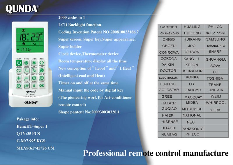 Универсальный пульт для кондиционера QUNDA KT-SUPER1