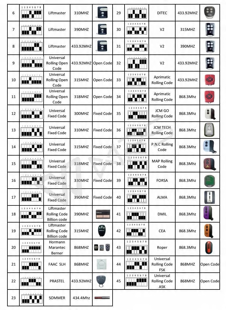 Приемник поддерживает пульты дистанционного управления, работающие на частотах от 300 до 868 МГц. с фиксированным или переменным кодом.
