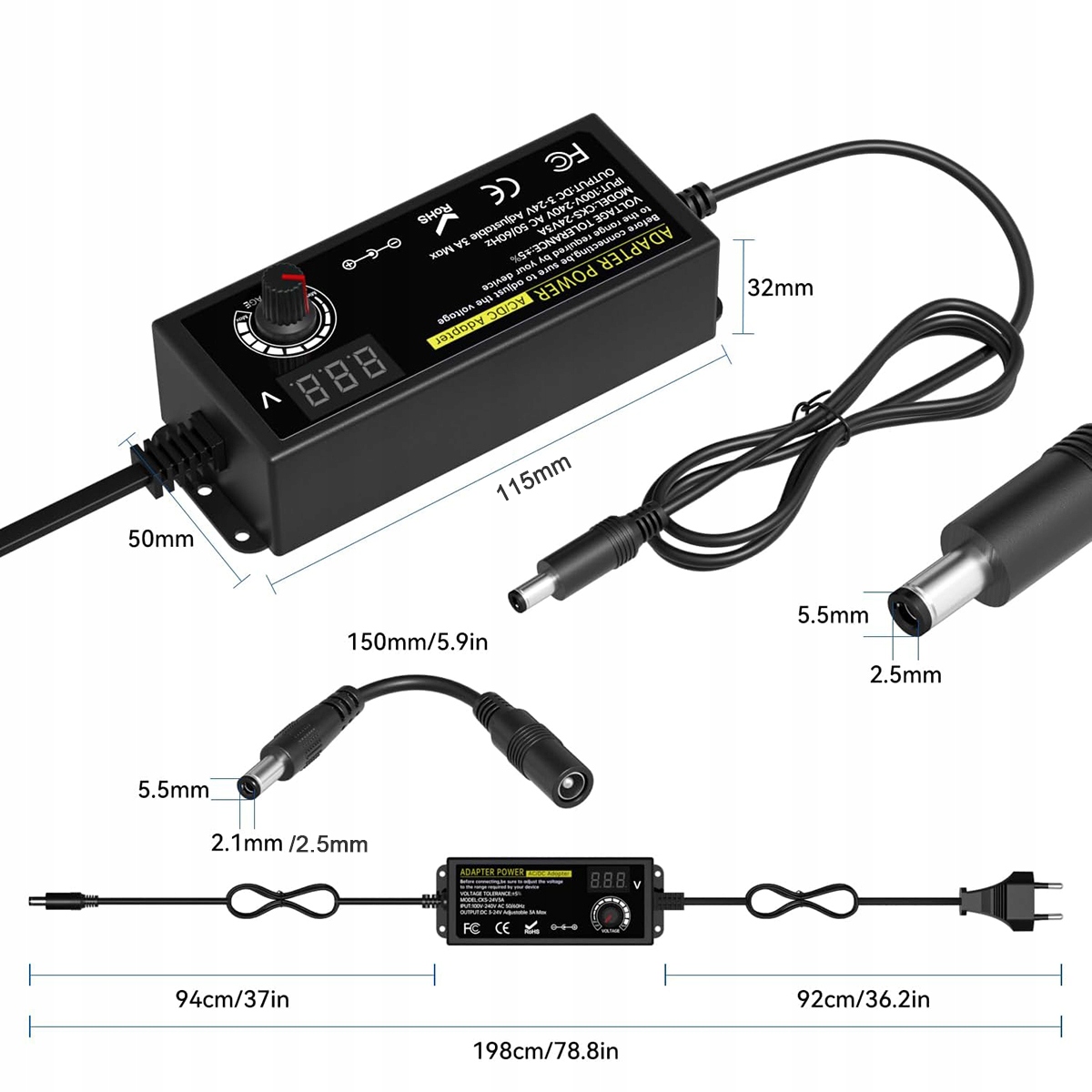 ✨ ✨ ✨УНИВЕРСАЛЬНЫЙ РЕГУЛИРУЕМЫЙ СЕТЕВОЙ КАБЕЛЬ 3–24 В, 3 А, 72 Вт