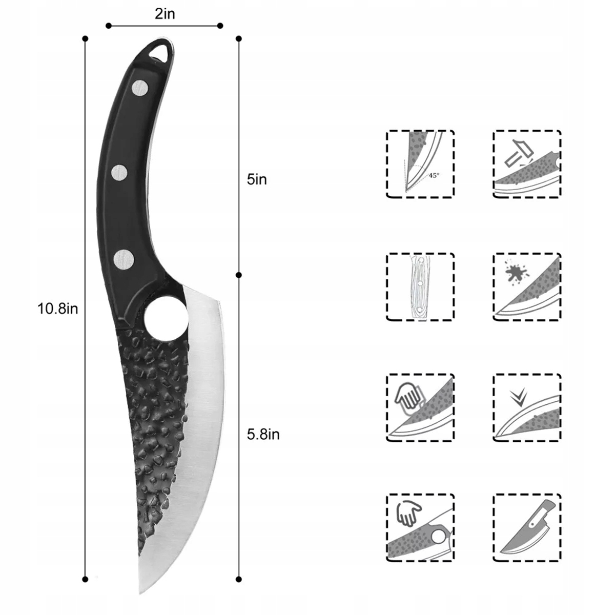 - 1. Острый и прочный, удобный для удержания, острый лезвие, легкая резка пищи, мелкополированное лезвие, гладкая и удобная, удобная ручка, нежная и дружелюбная кожа.