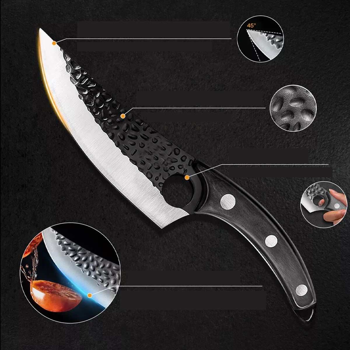 - 3. Поверхность кованого ножа относительно грубая, не такая гладкая, как машинный нож, но имеет особенности кованого ножа.