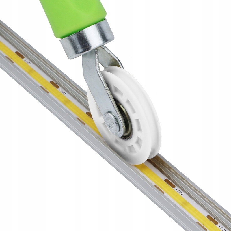 Ролик – специализированный инструмент для безопасного и эстетичного монтажа светодиодных лент в алюминиевые профили. Благодаря эргономичной ручке и двум разным роликам вы легко прижимаете ленту к земле, устраняя пузырьки воздуха и обеспечивая идеальный контакт с профилем.