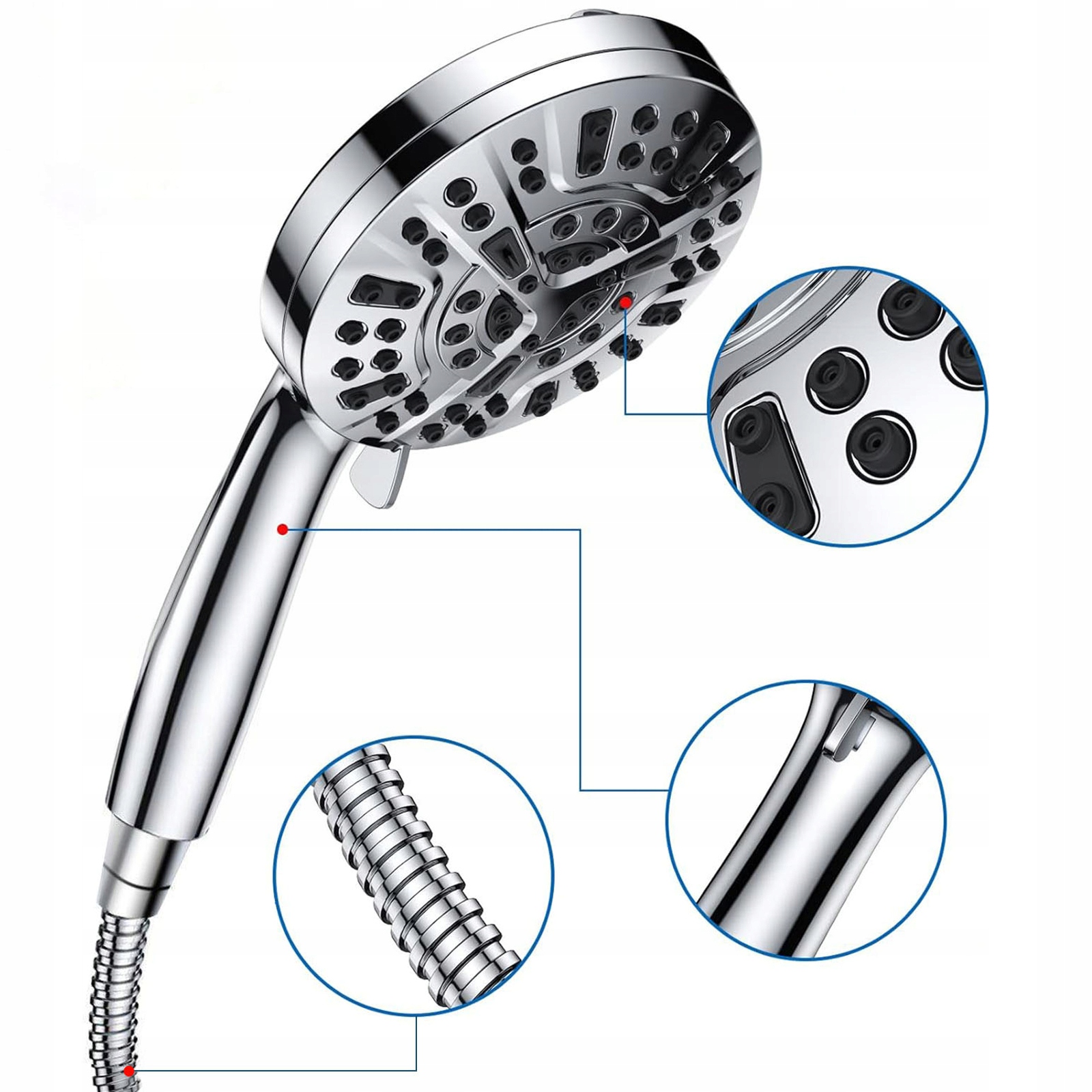 🚿🧼🧺【Высококачественная водонепроницаемость】 Эта ручная насадка для душа высокого давления изготовлена с использованием 9-этапного гальванического процесса. Он более прочный, легкий, устойчивый к коррозии и ударам. Душевой шланг из нержавеющей стали, регулируемый кронштейн, тефлоновая лента, резиновая прокладка. Идеальное сочетание высококачественных материалов не даст протечек.🛁🧽💦
