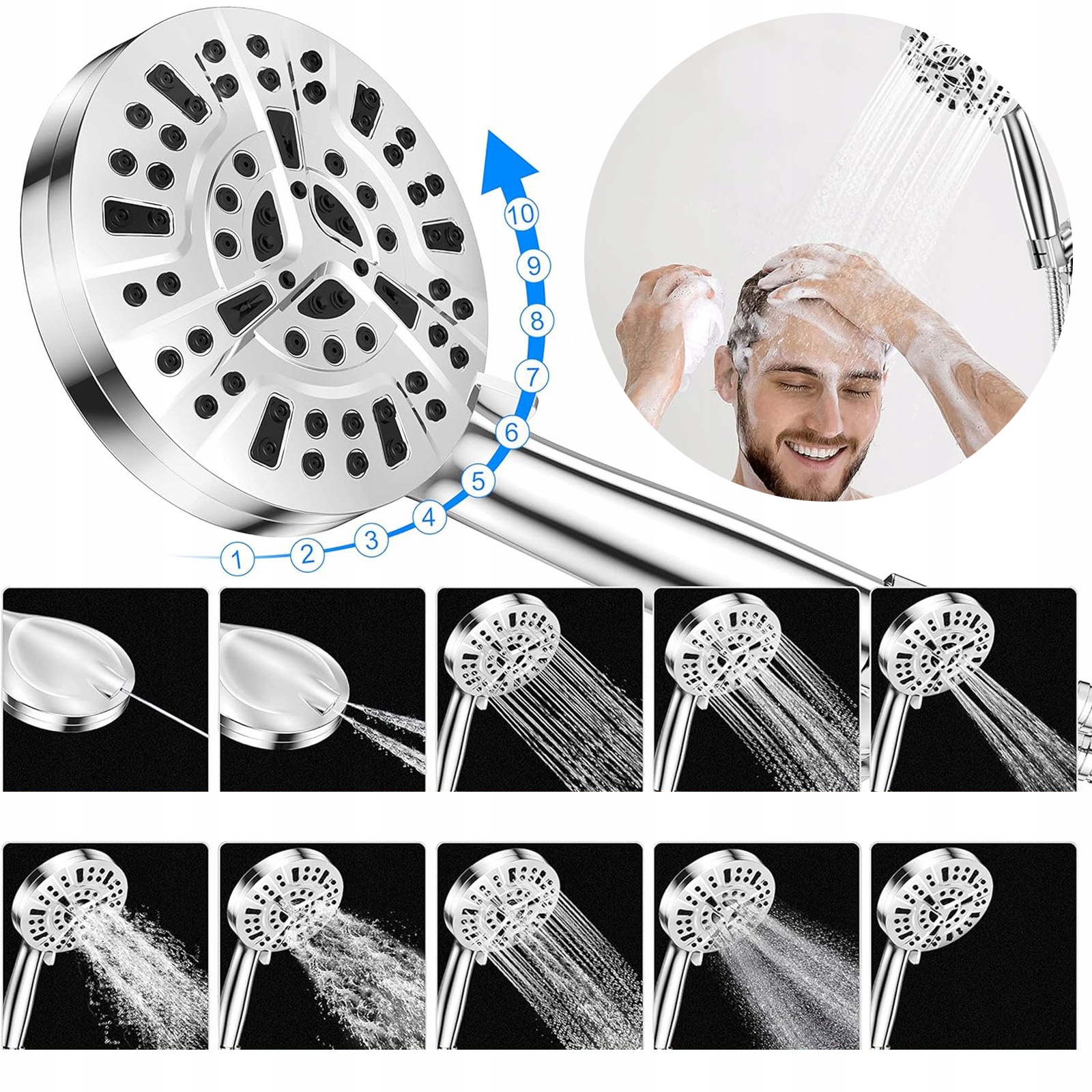 УНИВЕРСАЛЬНЫЙ ДУШ ВЫСОКОГО ДАВЛЕНИЯ С 10 ВАРИАНТАМИ СТРУЯ