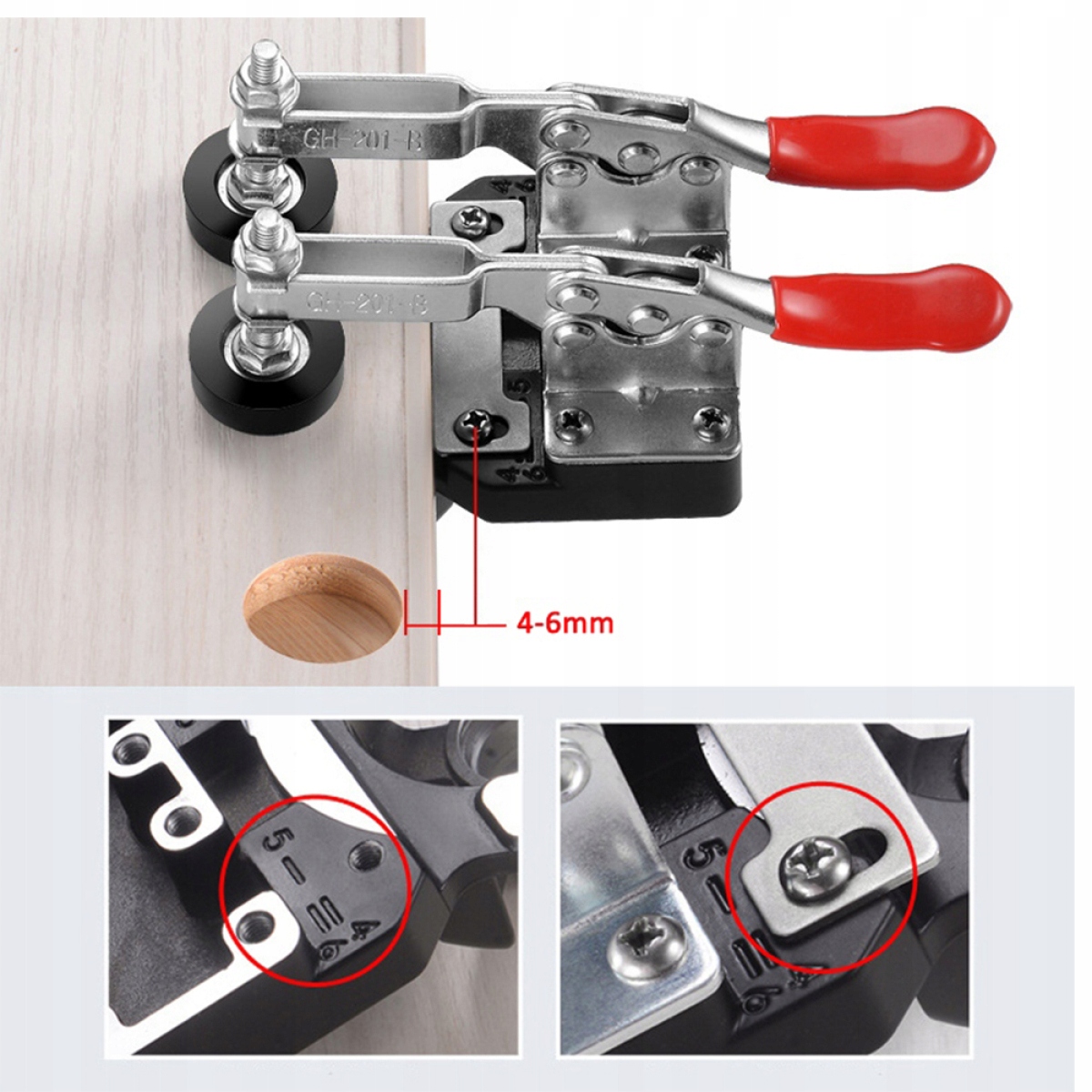 📐Регулируемый запас отверстия – возможность установить расстояние отверстия от края в диапазоне 4-6 мм позволяет адаптировать инструмент к различным шарнирным системам.