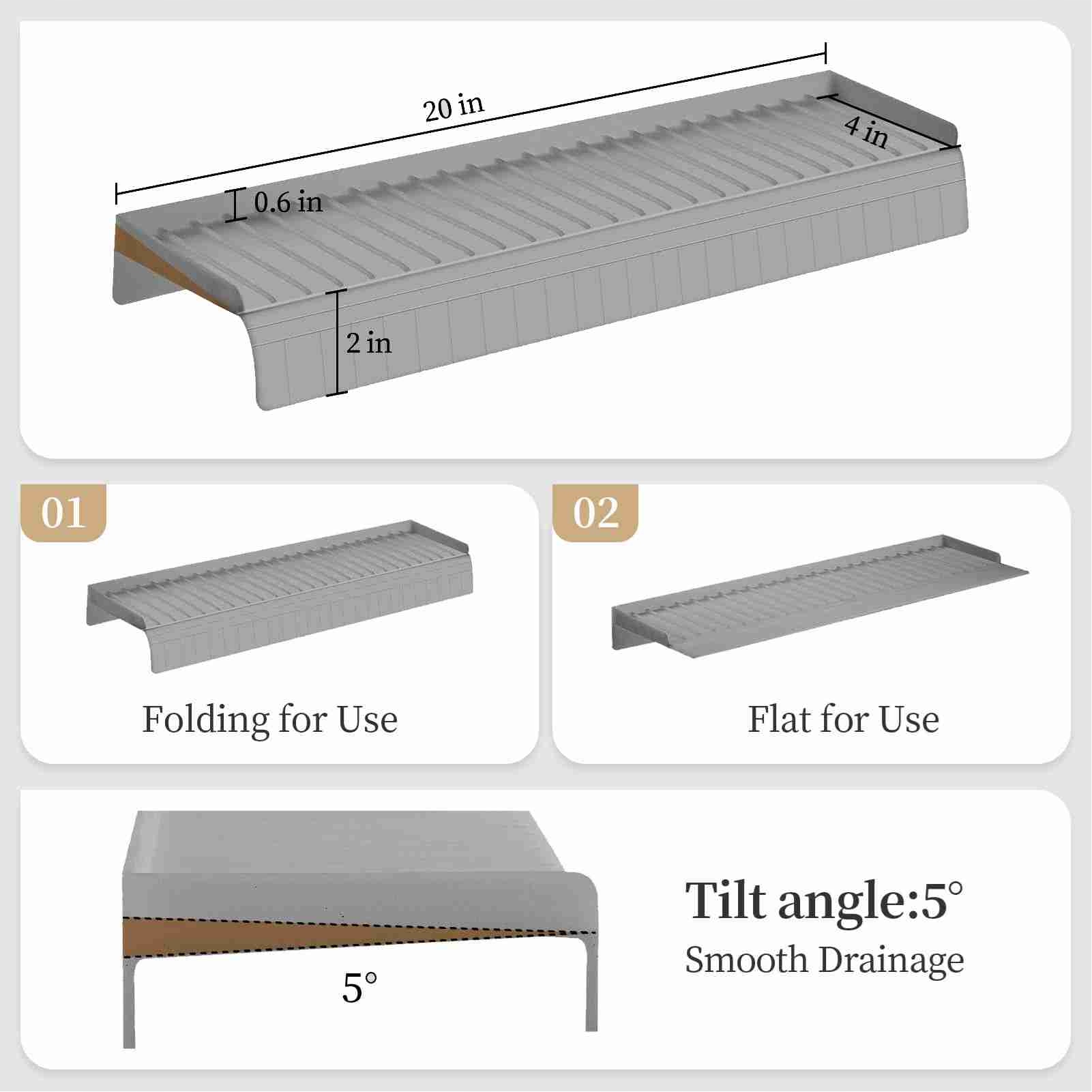 4. Расширяемый размер: эта защита края раковины размером 20x4 дюйма расширяется, поддерживает складывание или раскладывание, подходит для столешниц шириной от 3,7 до 6 дюймов, с прочной совместимость