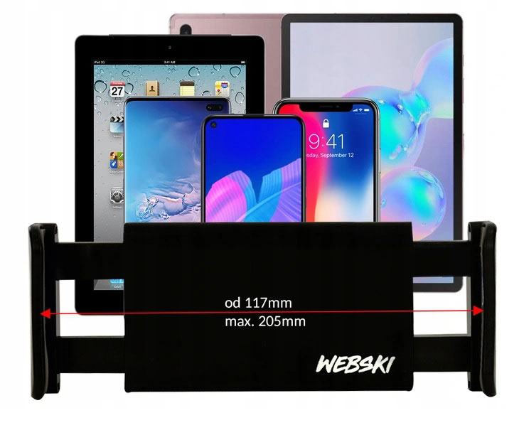 Держатель подходит для телефонов с диагональю от 4,7 до 8 дюймов и планшетов с диагональю от 7 до 11 дюймов