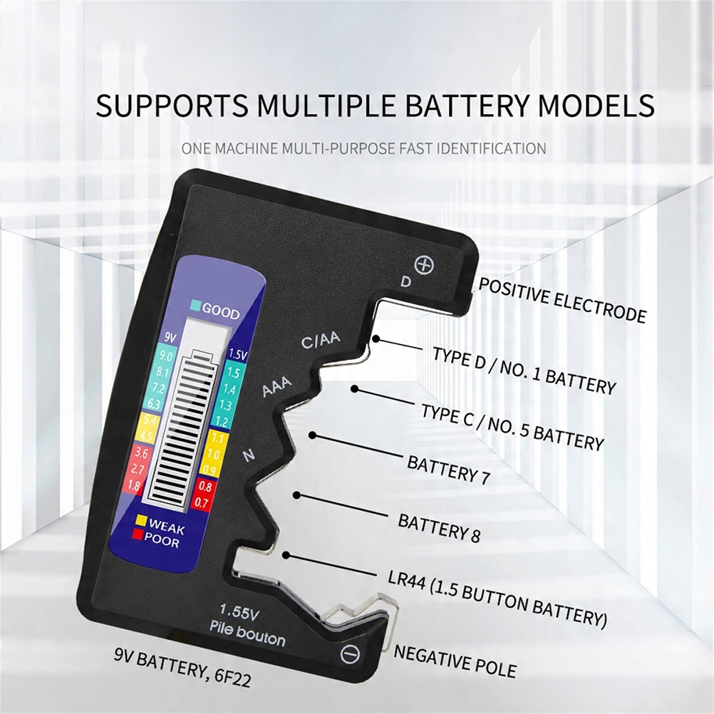 Этот товар представляет собой универсальный тестер для проверки батареек типа AA, AAA, C, D, N, 9 В и LR44. С его помощью вы можете легко получить электрическую мощность батареи, которую вы тестируете, и узнать, какие батареи следует оставить, а какие выбросить. Поместите батарею между двумя точками тестера батареи, и на индикаторном дисплее будет указано, нужно ли использовать батарею. быть заменен.