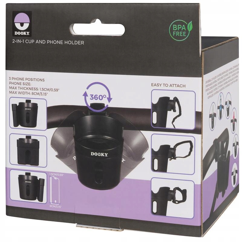 Подставка для чашки и телефона Dooky 2 в 1 — универсальный держатель, позволяющий держать любимый напиток и телефон под рукой. Простая система крепления подходит практически к любой коляске, а поворотная конструкция на 360° гарантирует, что чашка и телефон будут размещены в идеальном положении. Противоскользящее покрытие удерживает чашку на месте даже на ухабистой дороге. Больше не будет проливания при движении по неровной местности. Кроме того, держатель для чашки и телефона Dooky 2 в 1 гибкий, ударопрочный, поэтому выдерживает ежедневное использование и мелкие аварии. Независимо от того, выполняете ли вы небольшое поручение или собираетесь на длительную прогулку, этот практичный аксессуар вам поможет. Используйте подстаканник, чтобы держать любимый напиток под рукой, сохраняя при этом телефон в безопасности и под рукой, чтобы делать фотографии, отслеживать свой маршрут или оставаться на связи. Подставка для кружки и телефона Dooky 2 в 1 имеет размеры, соответствующие вашим потребностям. При максимальной толщине телефона 1,5 см/0,39 дюйма и максимальной ширине телефона 8 см/3,14 дюйма большинство современных смартфонов идеально помещаются в держатель. Имея длину 16 см, ширину 9,5 см и высоту 11 см, он занимает минимум места, но предлагает максимальную функциональность. Ощутите удобство держателя для чашки и телефона Dooky 2-в-1 и сделайте поездки с малышом еще более приятными. Благодаря элегантному дизайну и качественным материалам этот аксессуар станет надежным спутником при длительном использовании.