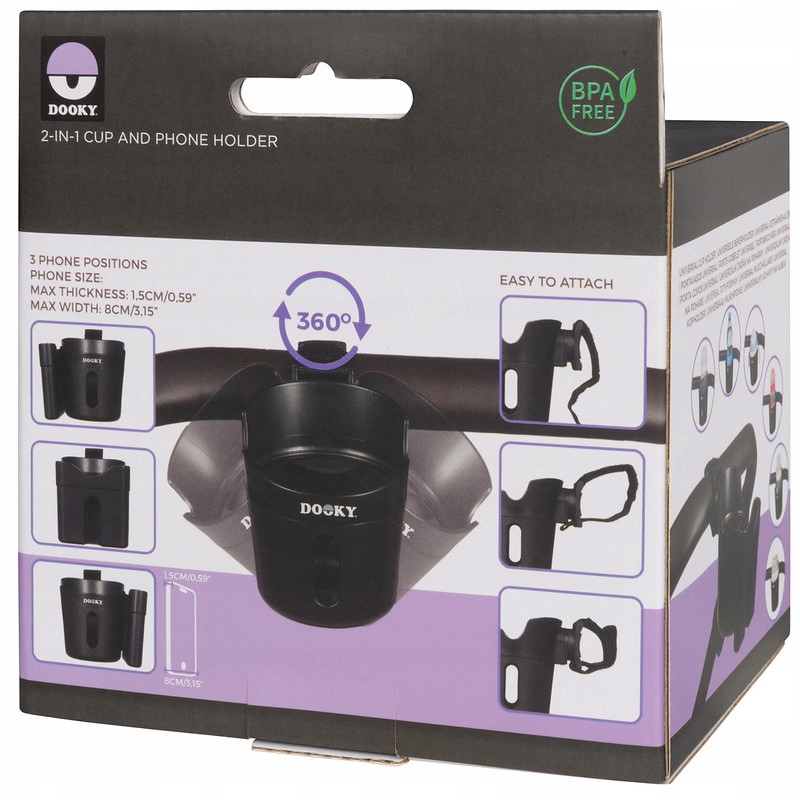 Ощутите удобство держателя для чашки и телефона Dooky 2 в 1 и отправляйтесь в путешествие вместе со своим малышом. ветерок еще приятнее. Благодаря элегантному дизайну и качественным материалам этот аксессуар станет надежным спутником для длительного использования.