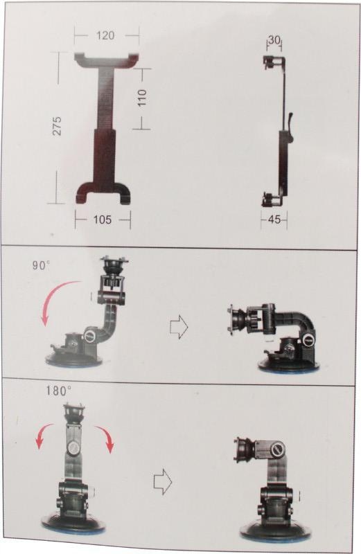 Держатель используется для крепления планшетов или других аудиовизуальных устройств к окнам или другим плоским и гладким поверхностям.