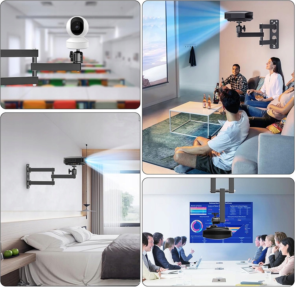 Получите идеальную настройку проектора благодаря универсальному держателю стены, разработанным для комфорта и стабильности. Его складной дизайн и точное регулирование делают его идеальным решением для дома, спальни, гостиной или конференц -зала.