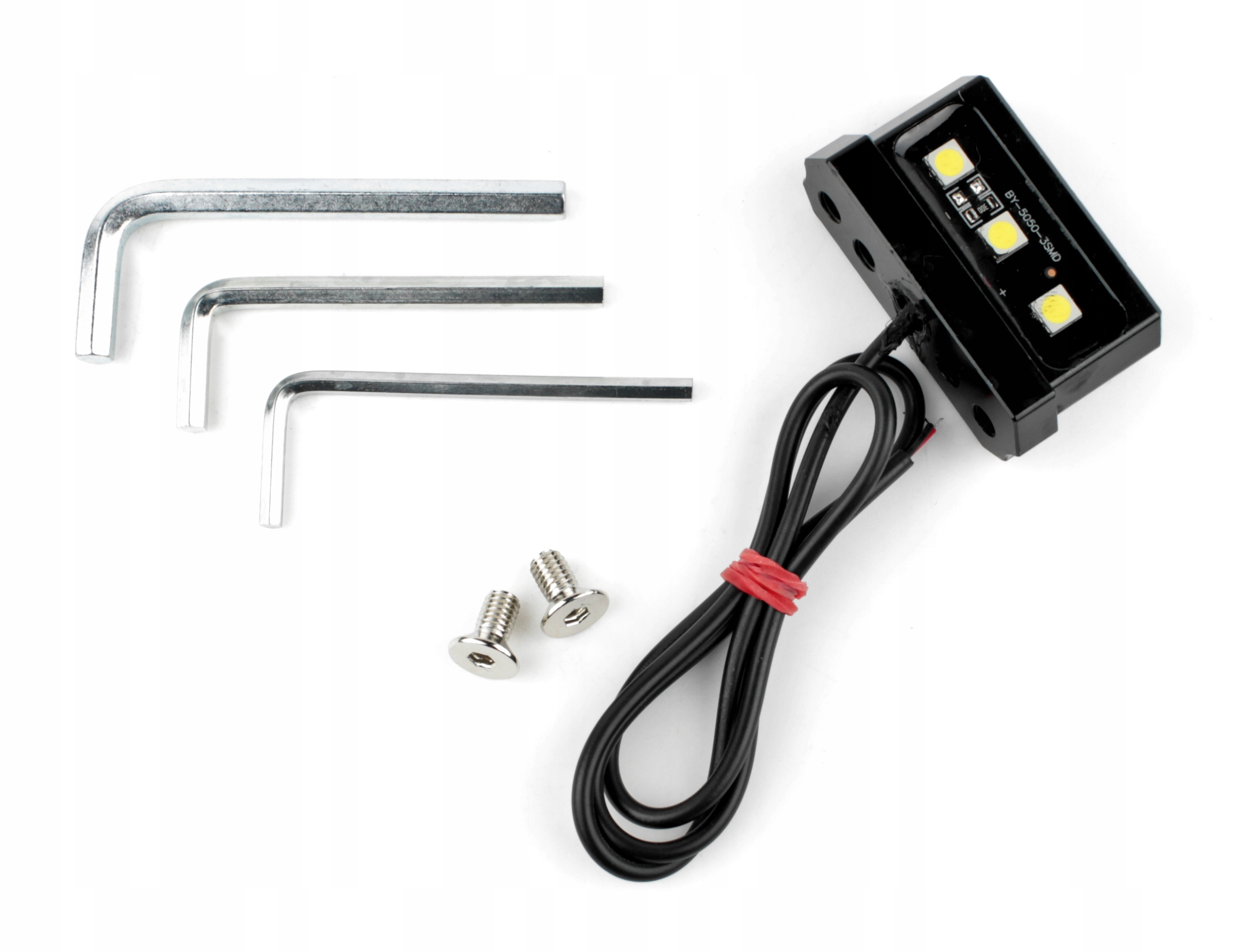 - Подсветка номерного знака - В комплект входит светодиод подсветки и набор винтов и шестигранных ключей для ее установки.