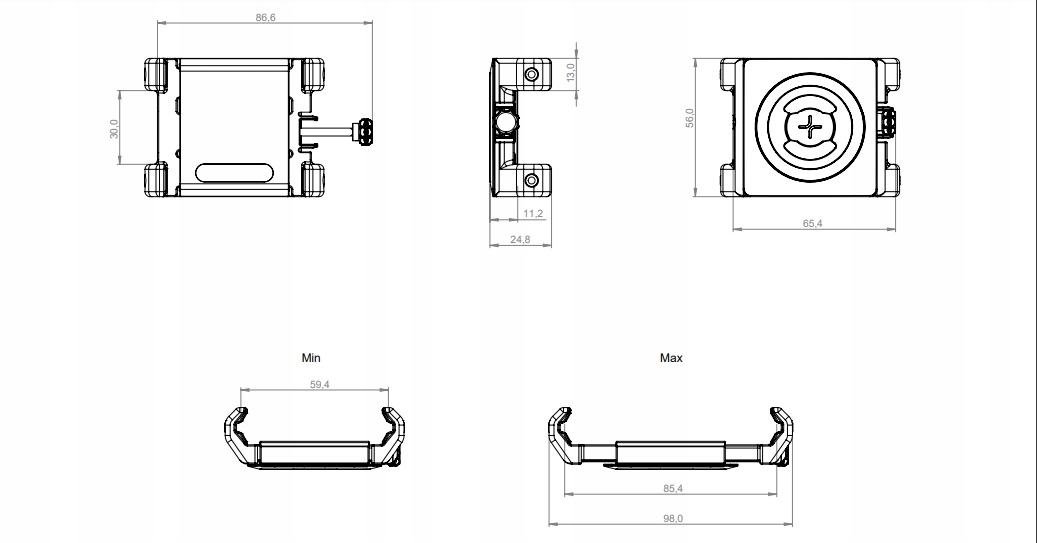 - . Возможность размещения телефона горизонтально и вертикально. Размеры: 86 (Ш) x 25 (В) x 56 (Г) мм. Вес: 48 г.